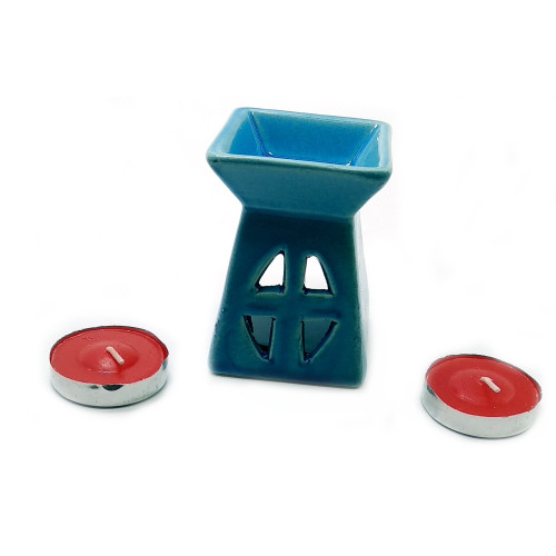 Описание Аромалампа керамическая ,подарочный набор синяя (12х8,5х7см)