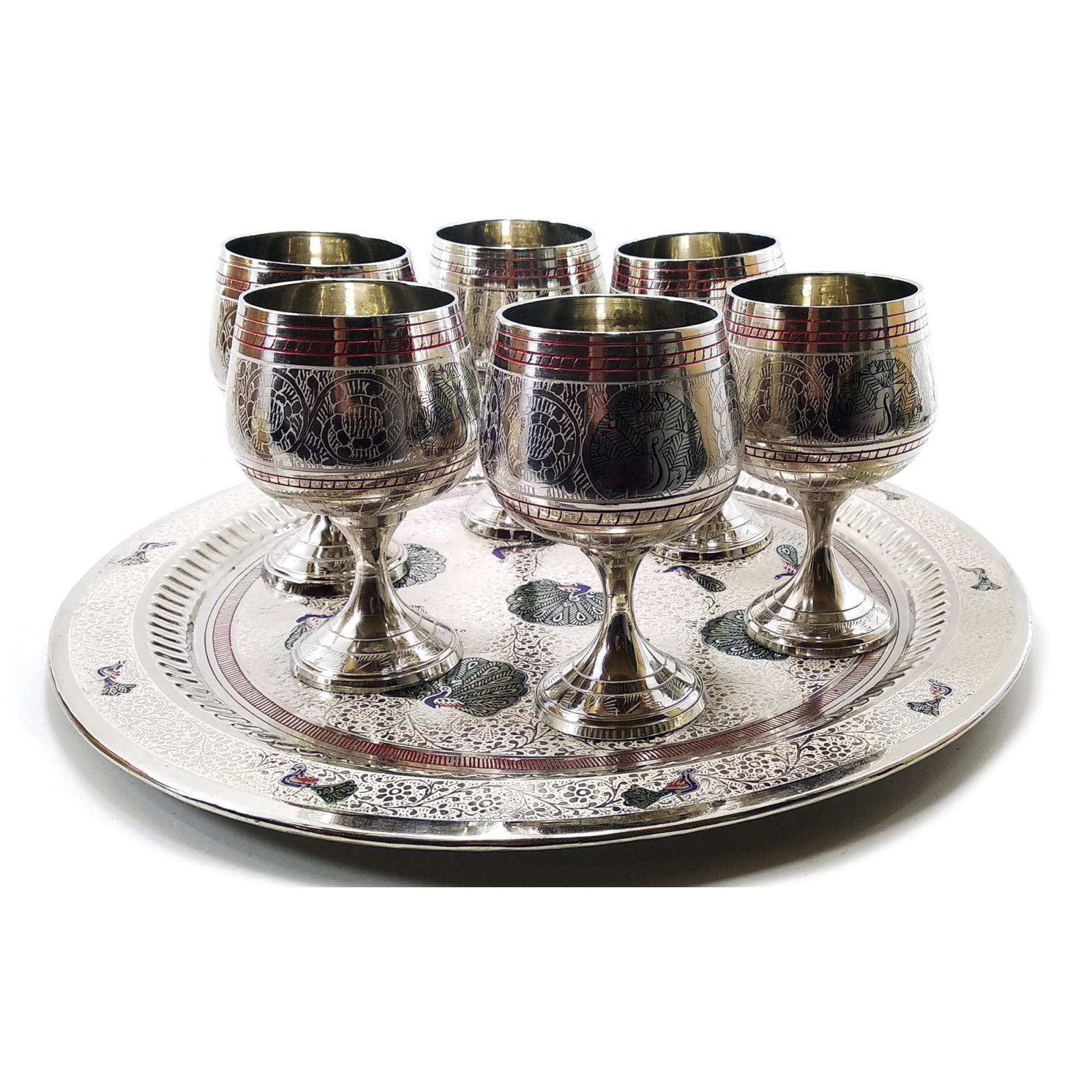 Бокалы бронзовые хром на круглом подносе (н-р 6 шт/70мл.)(h-11 см поднос d-31см) A