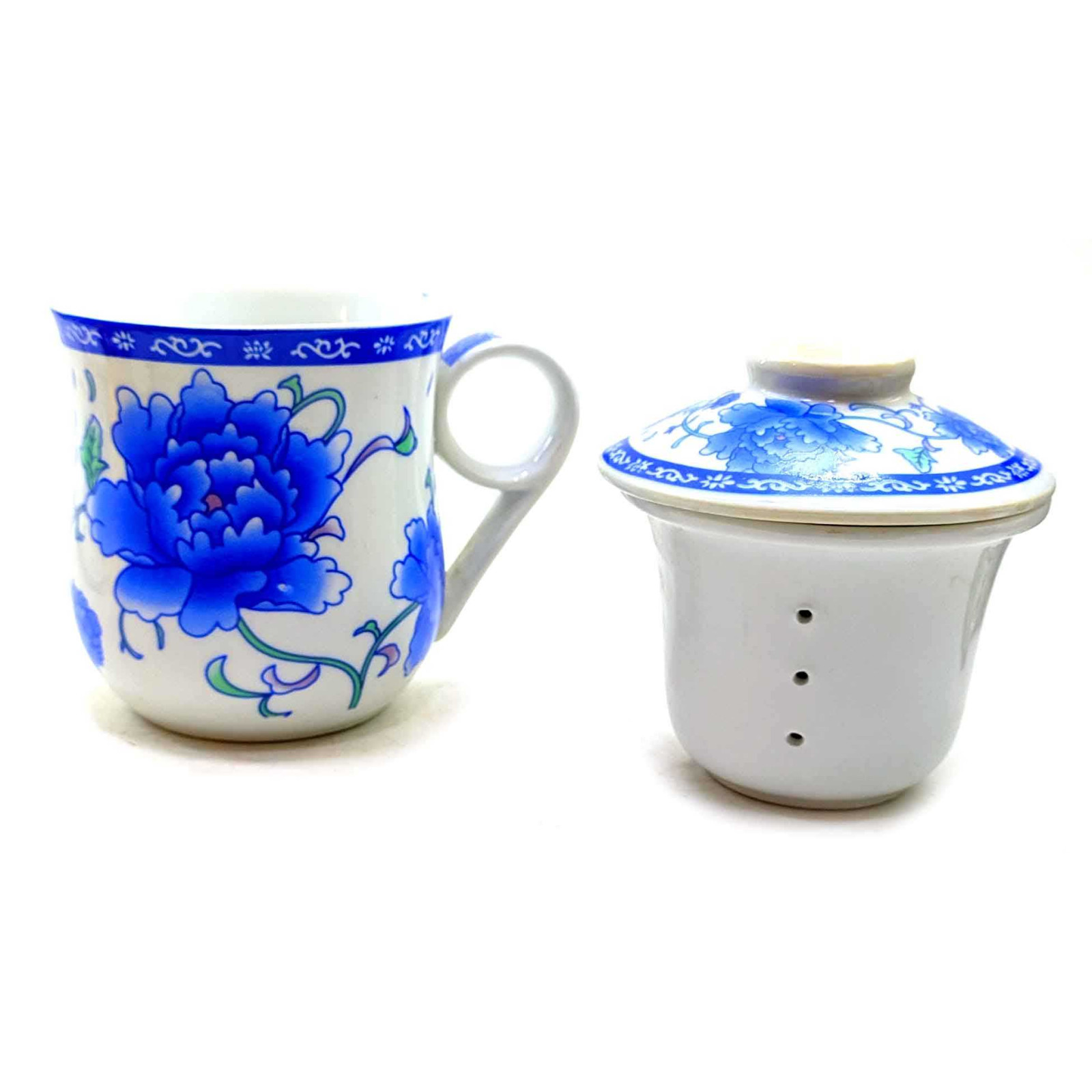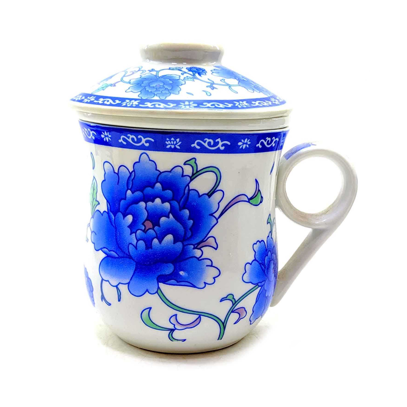 Чашка керамическая с ситом "Синие цветы"(12х11х9 см)E