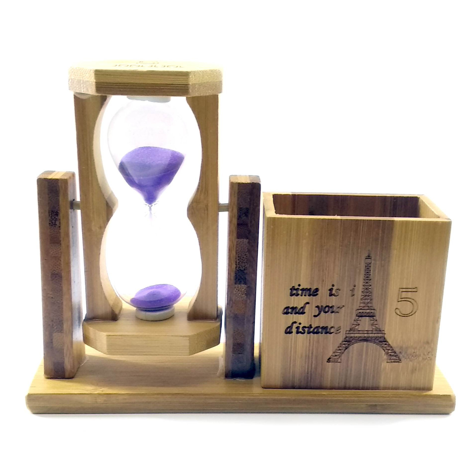 Часы песочные с подставкой для ручек фиолетовый песок(19х15х5,5 см)