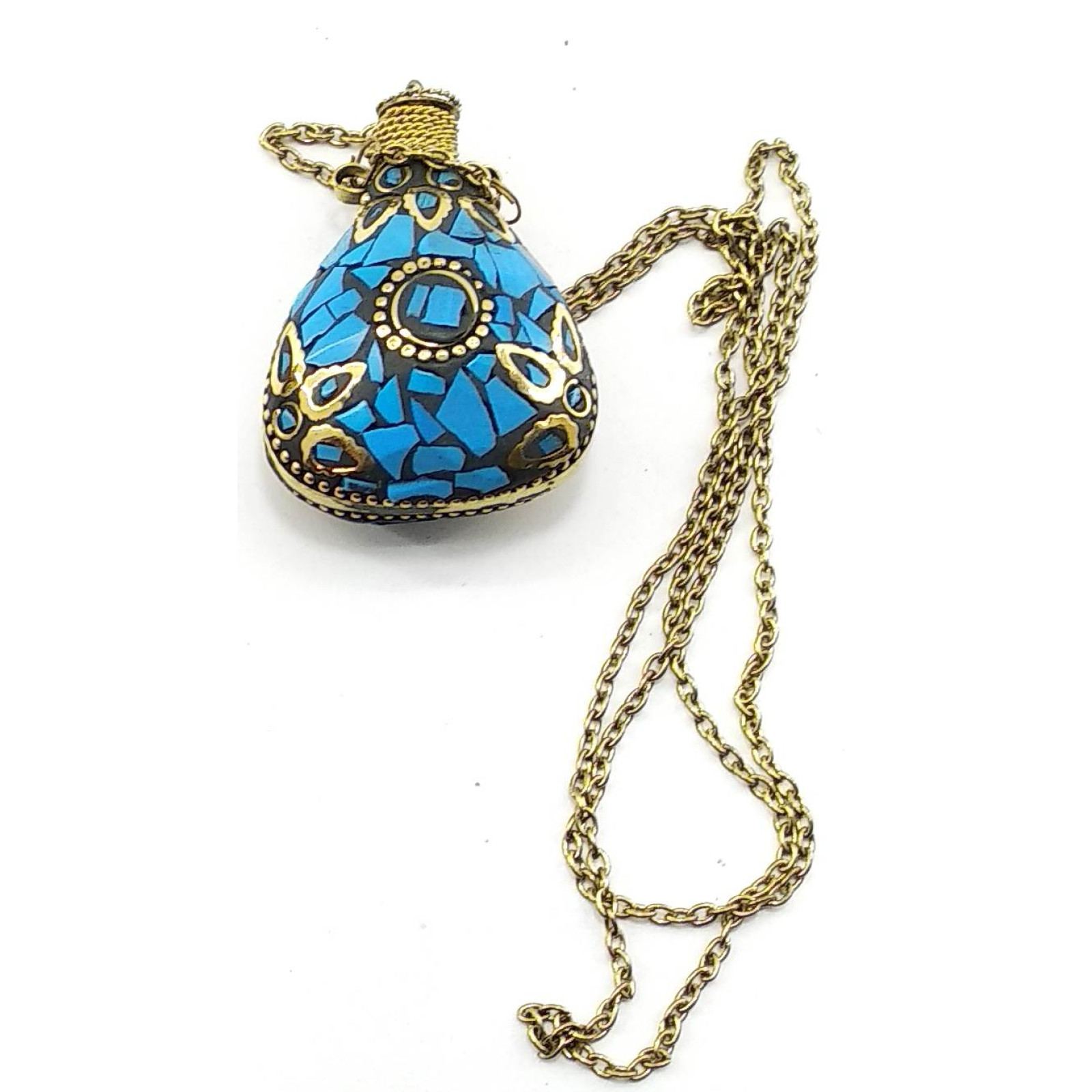 Bronze aroma pendant with turquoise inserts (5.5x4.5x2 cm)