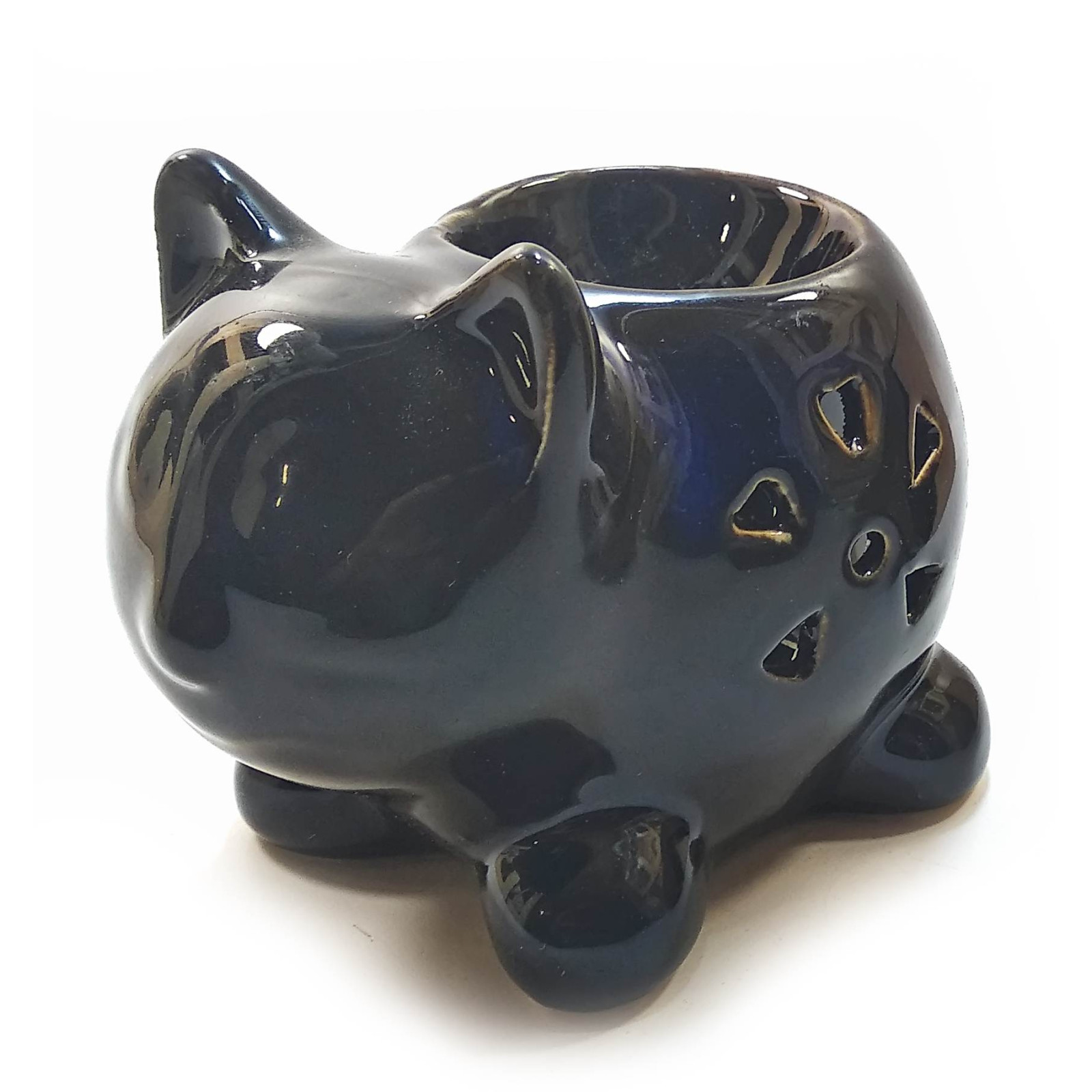 Ceramic aroma lamp "Cat" black-blue (13x10x7.5 cm)