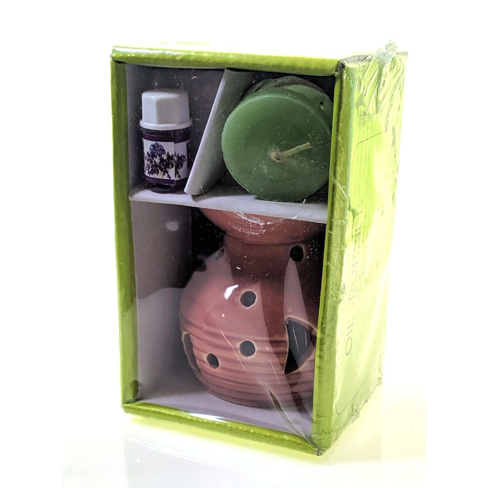 Ceramic aroma lamp, burgundy gift set (12.5x8x7.5 cm)