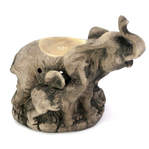 Aroma lamp "Elephant with baby elephant" antique (16x17x8.5 cm)