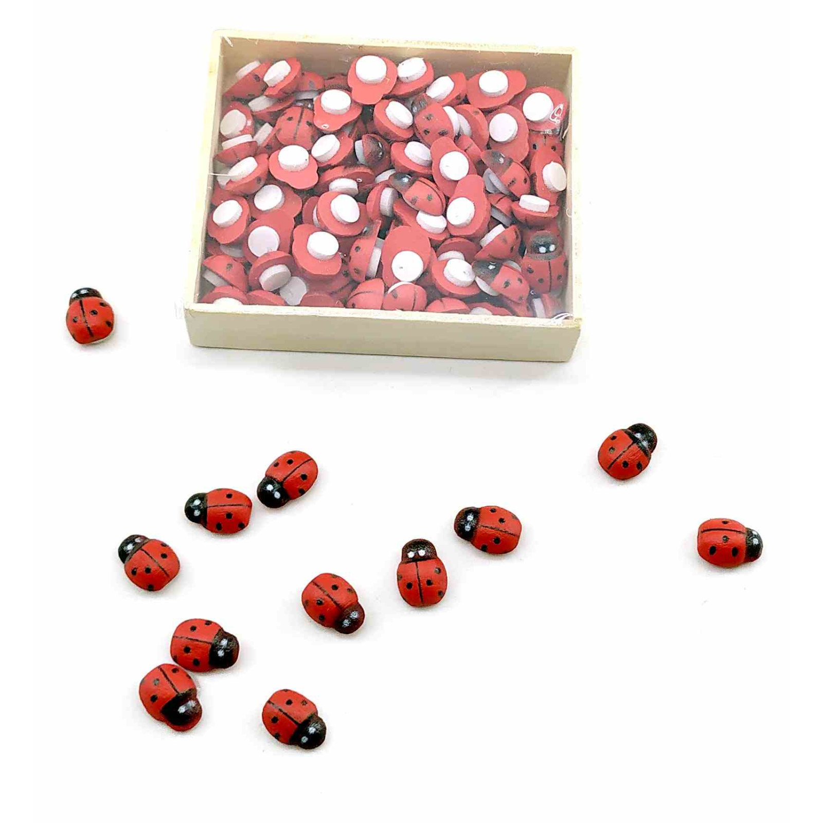 Wooden ladybugs stickers (set of 100 pcs) (1x0.5x0.5 cm)