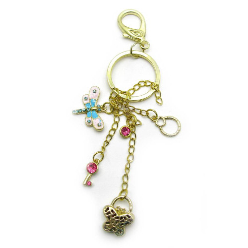 Keychain with rhinestones "Butterfly and Dragonfly"
