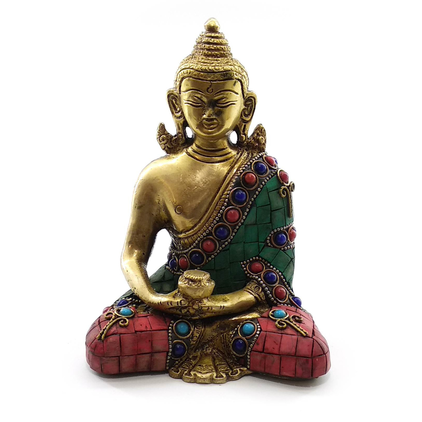 Buddha bronze turquoise, corals (15x11.5x7.5 cm)
