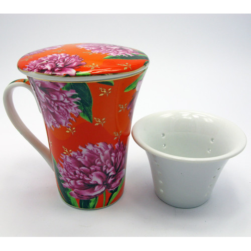 Tags: Tea cup with sieve (240ml)(UFC23-1) "Peonies" (h-11cm, d-8.5cm), tableware, gift set, drinkware, Peonies
