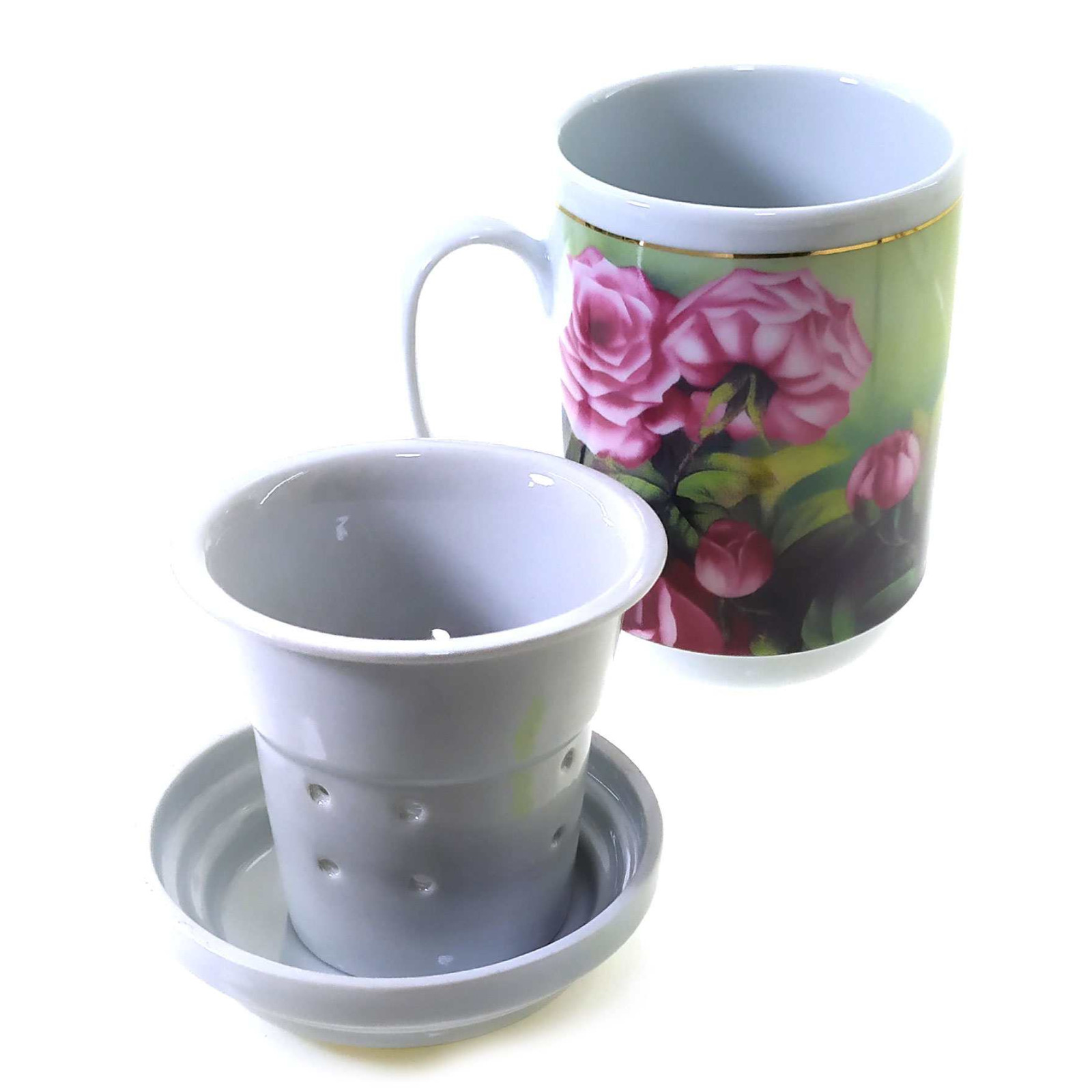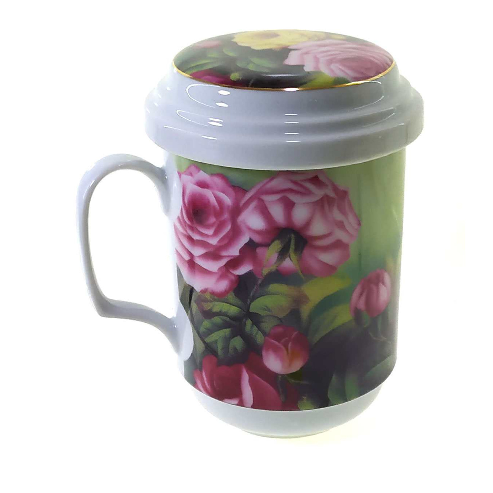 Brewing cup with sieve (330ml.) (BFC3056) "Roses" (h-13cm, d-7.5cm)