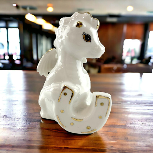 Welcome to a world of magic with our sweet Horseshoe Dragon - made from porcelain, embodying sophistication and warmth. The white color with golden details makes this dragon not only adorable but also a unique accessory for your home.