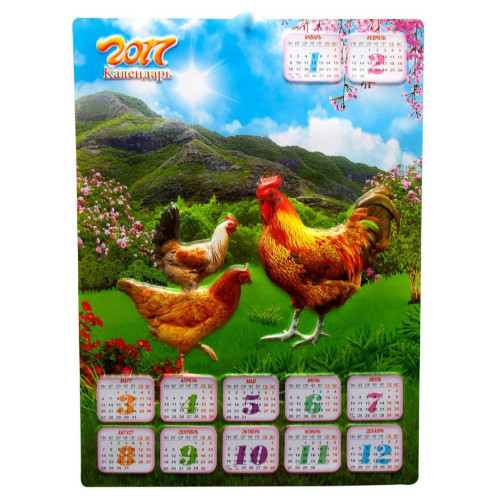 Календарь "Год Петуха 2017" объемный, пластик(47х34 см)