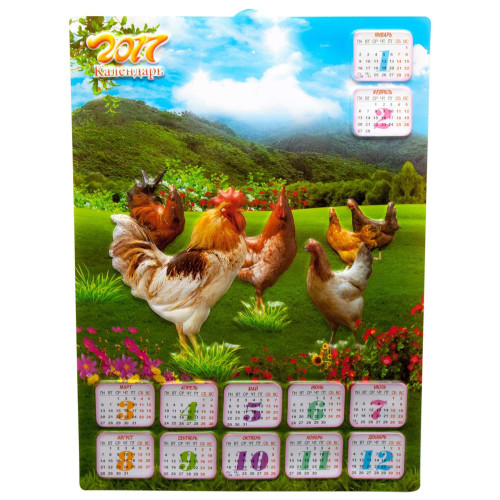 Calendar "Year of the Rooster 2017" three-dimensional, plastic (47x34 cm)