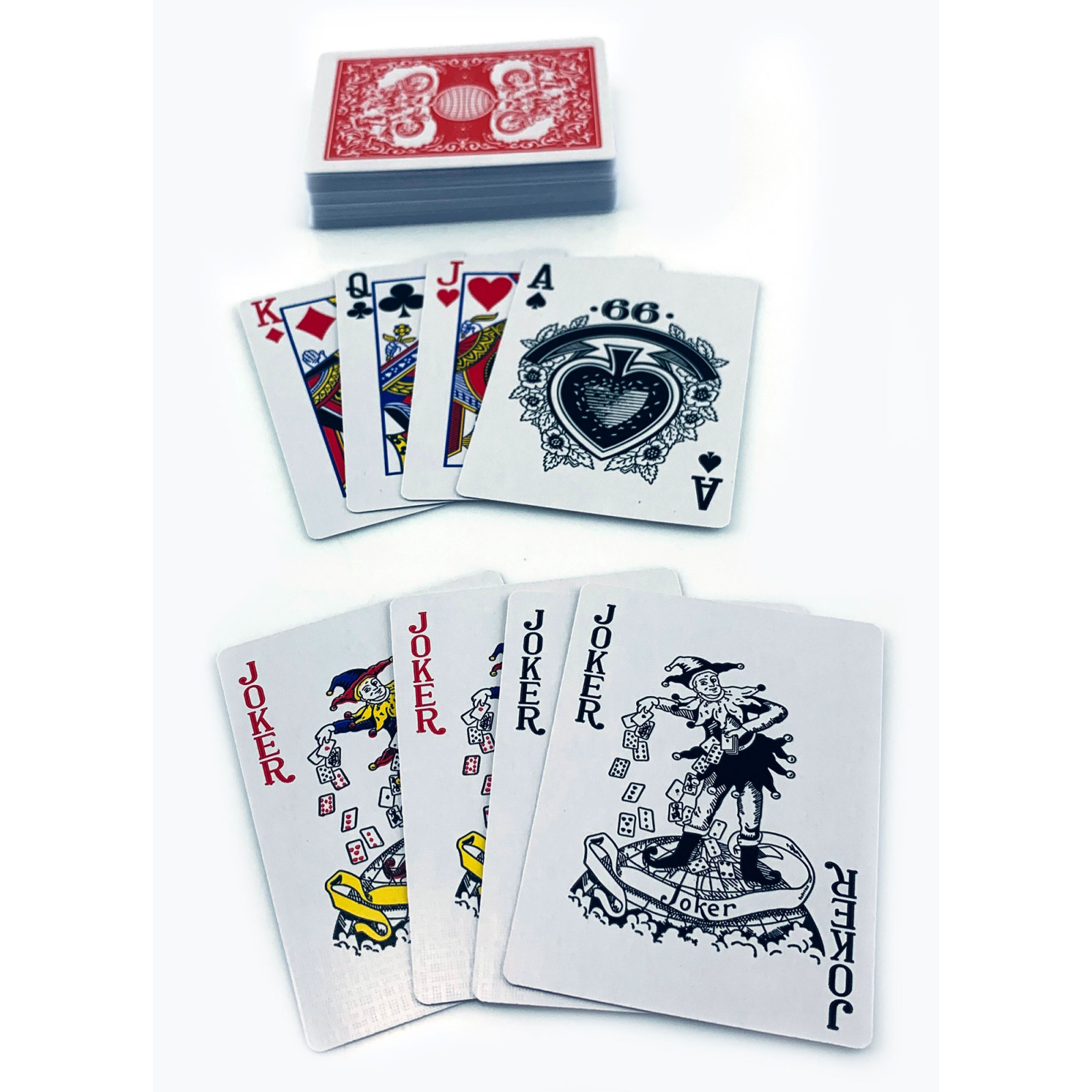 Plastic coated playing cards are a faithful companion for your card games. The durable plastic coating makes them exceptionally resistant to wear and tear, which means you can enjoy the game for a long time without worrying about damage to the cards. Each deck includes 52 standard cards and 4 Jokers, making them suitable for a wide range of card games. These cards are also perfect for home parties, casinos or any other occasion. With their compact size and stylish design, these cards are easy to store and carry around. The deck box provides extra protection and organization. Order our plastic coated playing cards today and get ready for an exciting card adventure with reliable and durable cards! 52 cards and 4 Jokers in each deck. Durable plastic coating provides durability and resistance to damage. Size of each card: 85x62mm. Compact dimensions of the deck in the box: 89x64x18 mm.