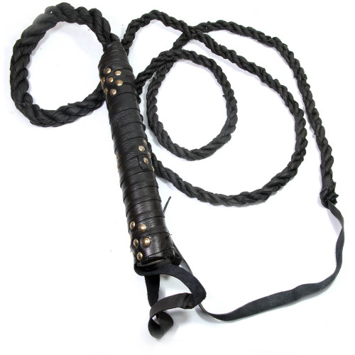 The whip features a nice combination of black leather and metal rivets on the handle, creating an impressive visual statement. The leather strip tip adds not only style, but also increased functionality in every movement.