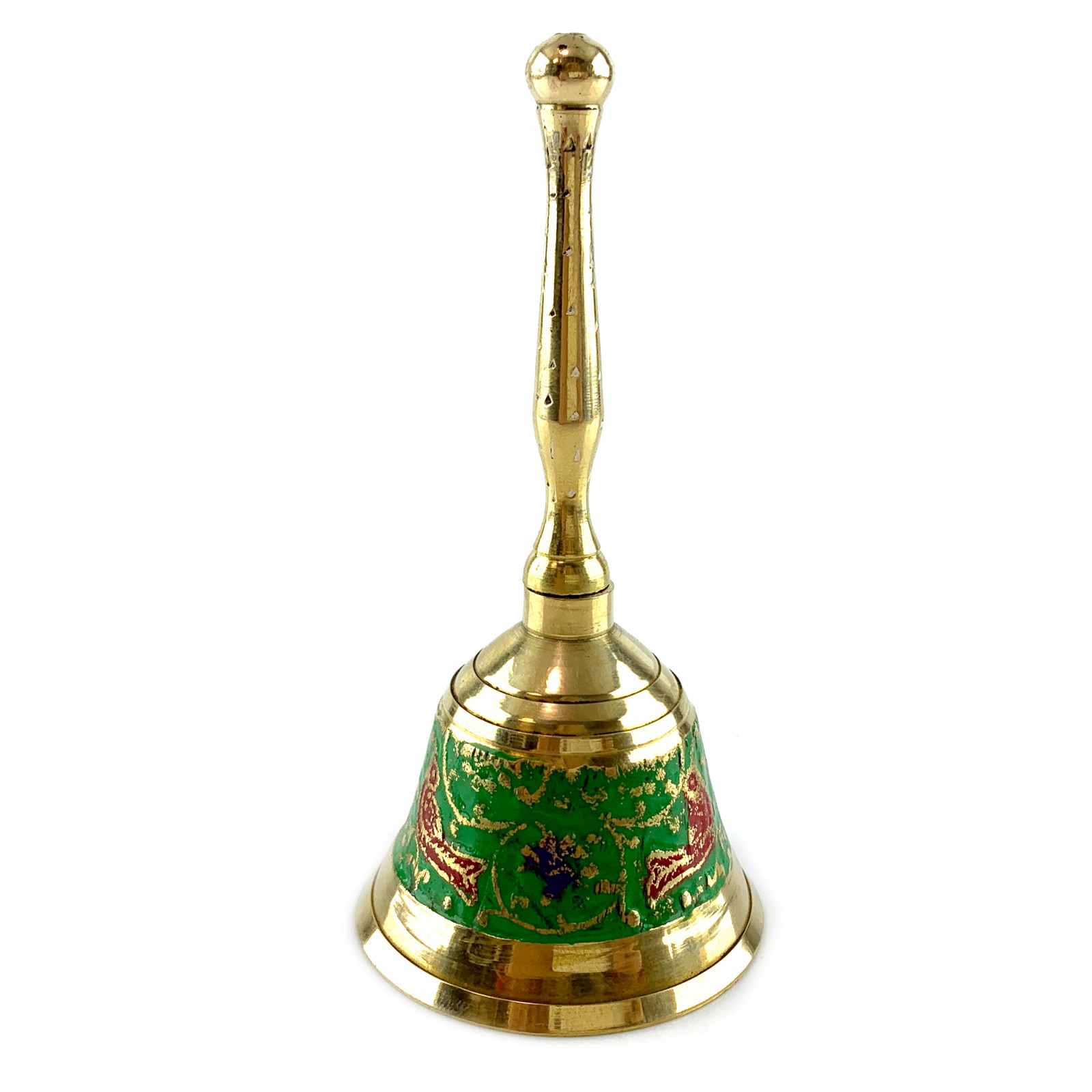 Specification Bell with a handle with a bronze pattern "Birds on a green background" (12.5x6 cm)