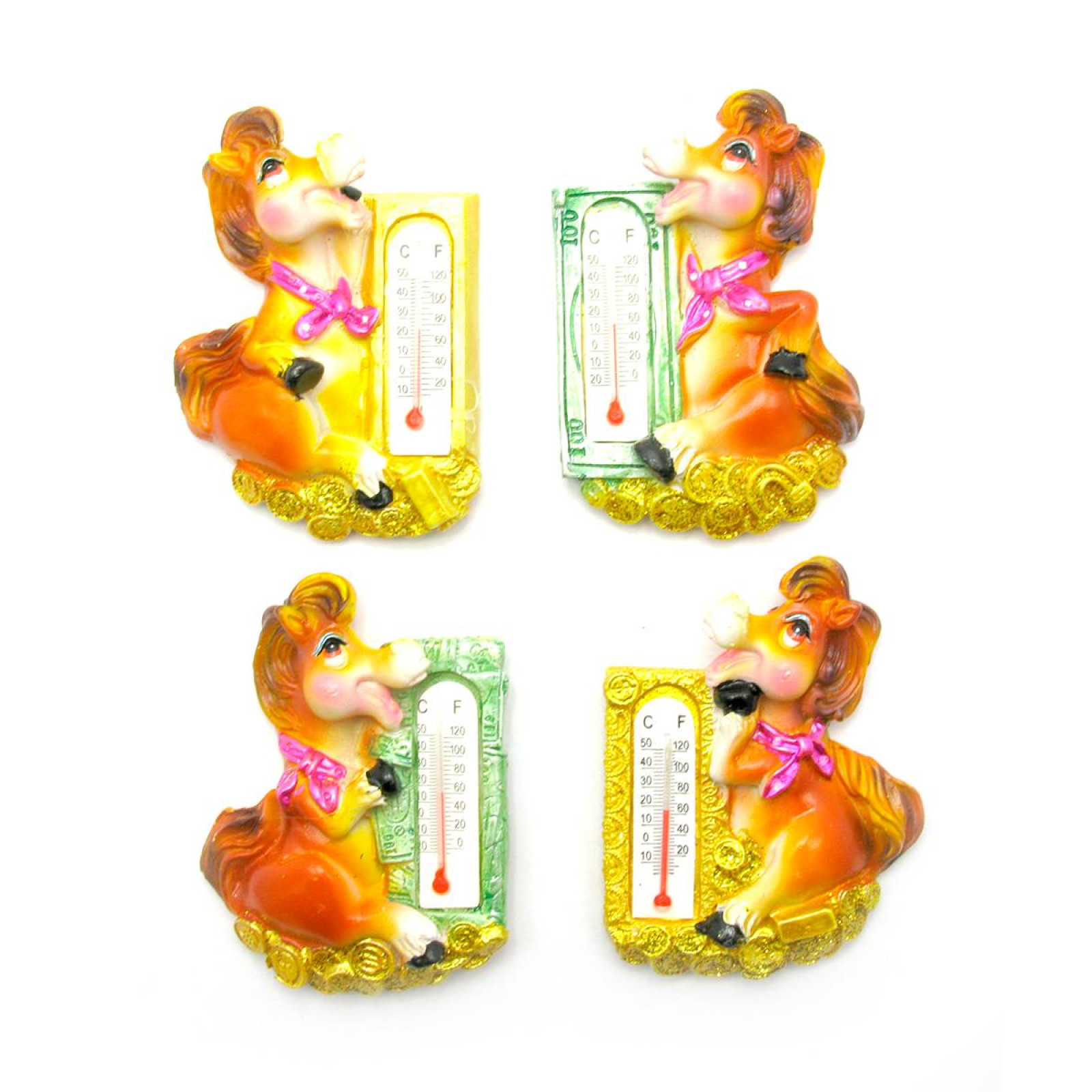 Horse with a thermometer fridge magnet (16 pcs / pack) (7.5x5.5x1.5 cm)
