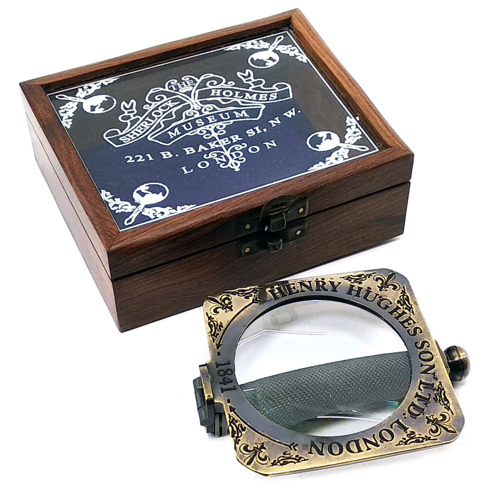 Specification Лупа бронзовая "Sherlock Holmes" антик в деревянном футляре (лупа 9,5х21cm футляр 12х12х5 cm)
