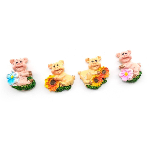 Fridge magnet "Pig with a flower" (24 pcs/pack) (4x4x1.5 cm)