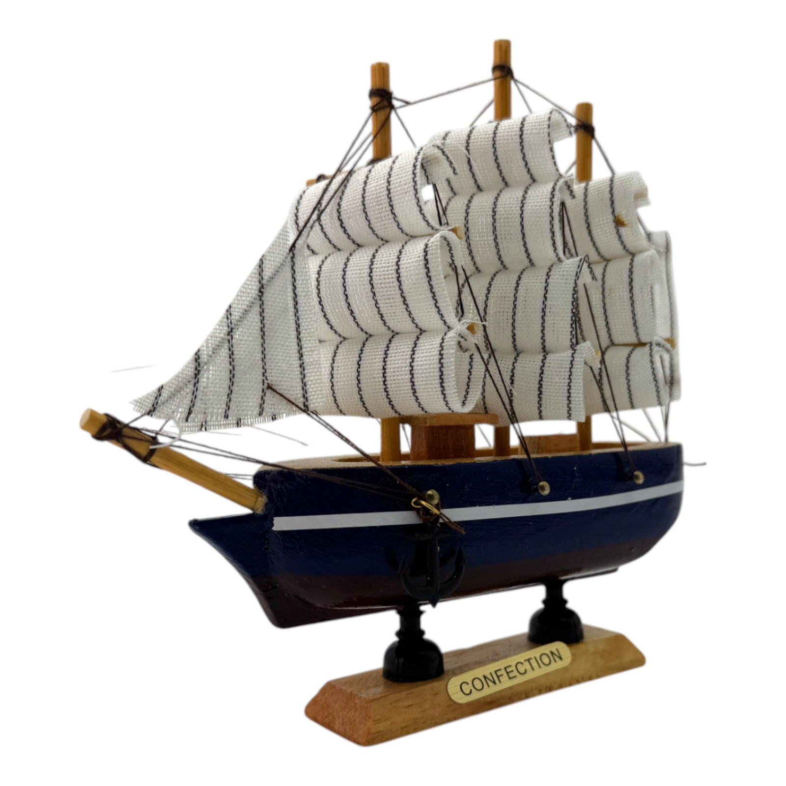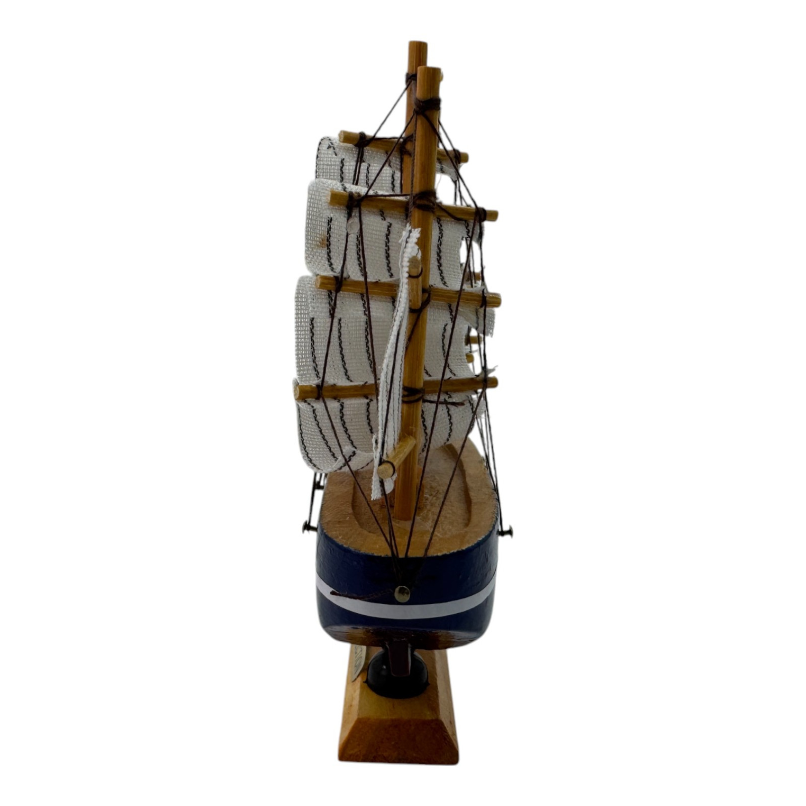 The graceful sails and thoughtful details of the masts create a feeling of lightness and movement, as if this little ship is ready to set off on a long voyage. The model is equipped with a wooden stand, which adds stability and makes it convenient to place.