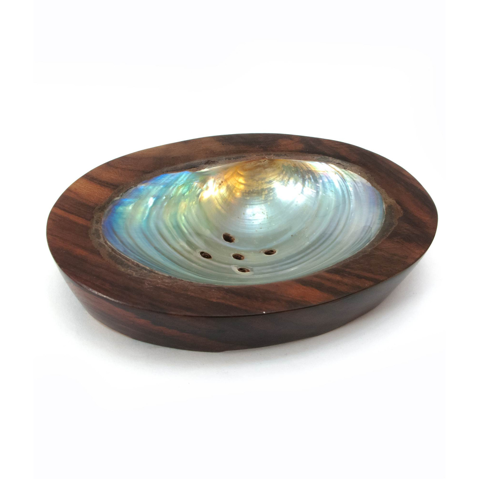 Soap dish wood with mother-of-pearl (14x9.5x2.5 cm)