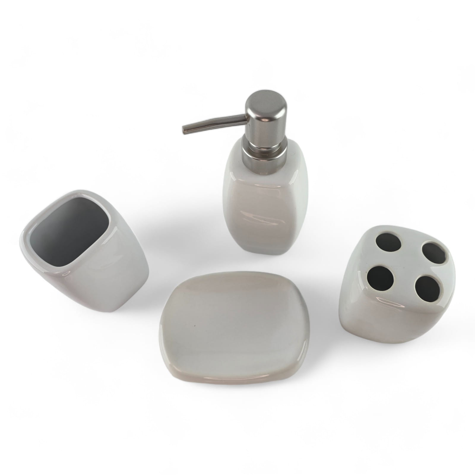 Ceramic bathroom set. This set will help you beautifully place your bathroom accessories and decorate its design.