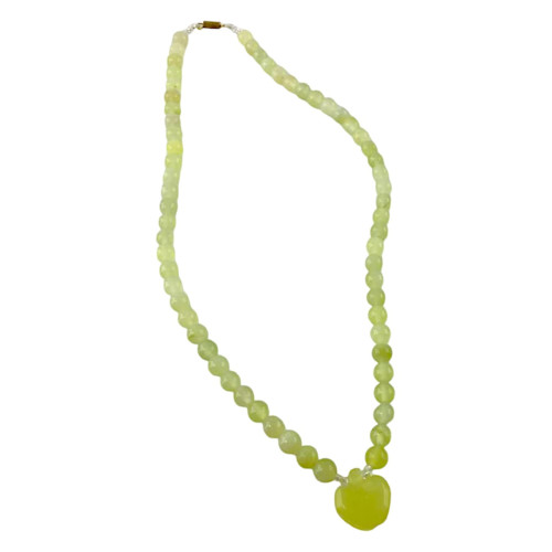 This necklace is perfect for everyday wear or special occasions. The apple pendant will add strength and confidence to your look, while the delicate jade beads will add sophistication and refinement.