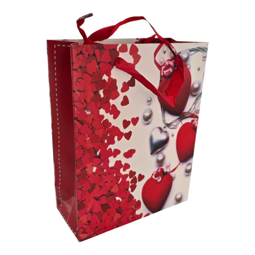 Description Cardboard gift bag "Hearts" (18x23x8 cm)