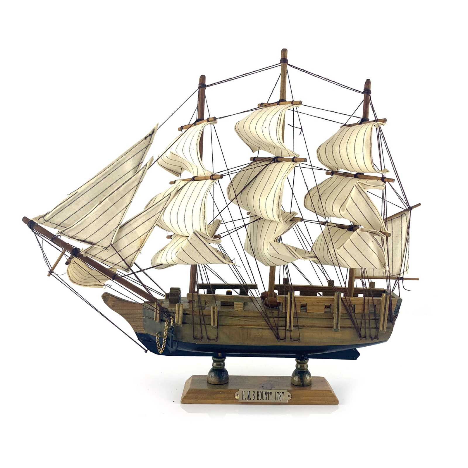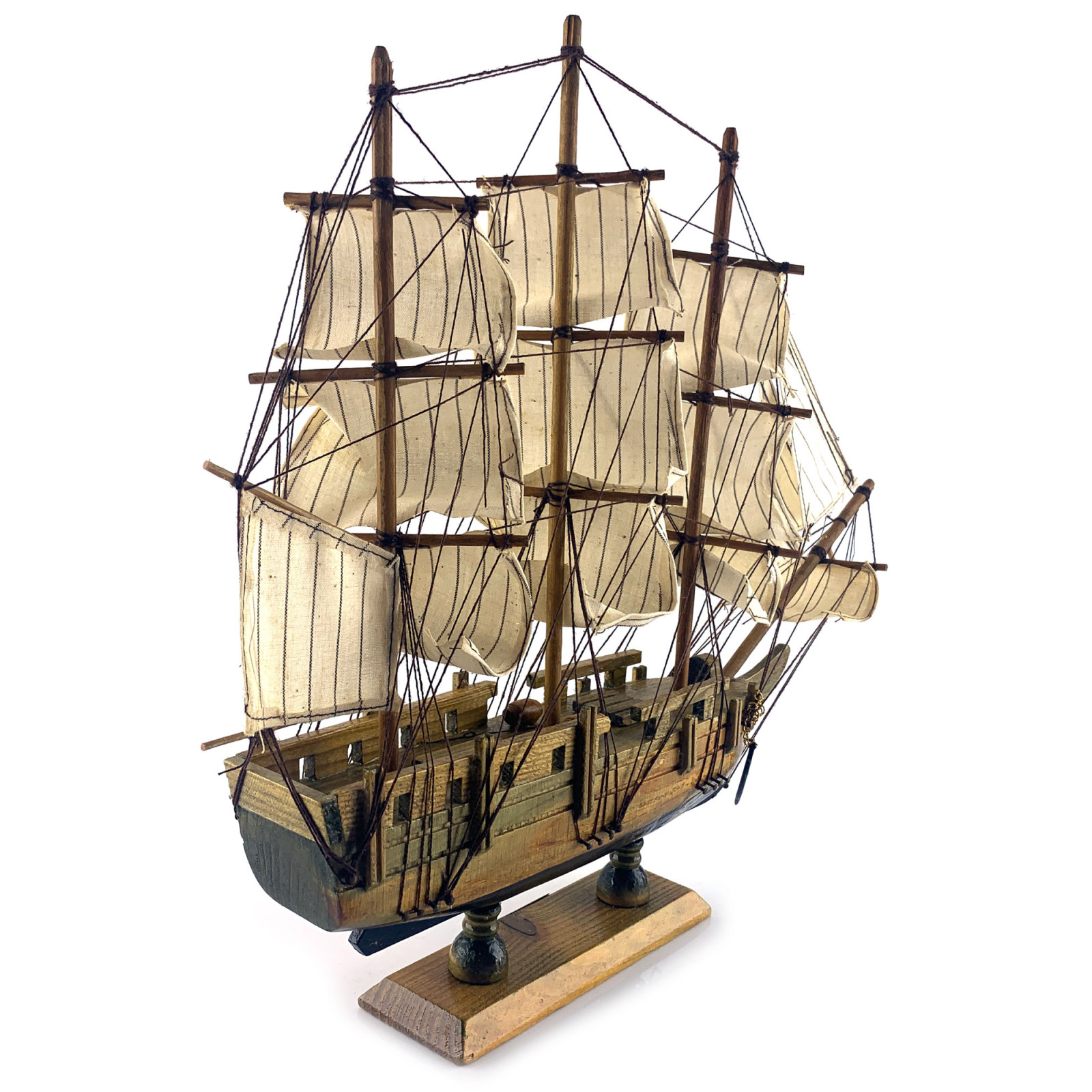 A magnificent wooden ship on a stand is the perfect decor element to create an atmosphere of marine romance and mystery. The wooden ship has an exquisite design and meticulous attention to detail. The dimensions of the ship are 400x330x60 mm, which allows you to enjoy every detail of its majestic form. The ship is decorated with masts, light striped sails and anchors on both sides, adding to its special charm and emphasizing its nautical theme. The wooden material gives the ship a natural warmth and a unique character, making it not only a stylish piece of decor, but also a true work of art. The ship is mounted on a sturdy base measuring 155x50 mm, which provides it with a stable position and allows it to become the center of attention in your interior. This wooden ship on a stand will be a wonderful decoration for your home, office, cafe or any other space. It will fill it with the atmosphere of travel, sea stories and adventures. Give yourself and your loved ones a unique decorative element - a wooden ship on a stand, and you will plunge into the world of marine secrets and mysteries. Buy it on our website and give your interior sophistication and originality!