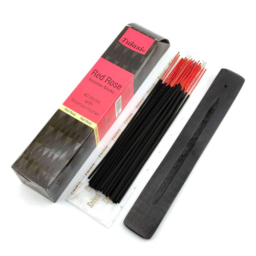 Red Rose 40 Stiks with Incense Holder (Incense 40 pieces with wooden stand)(Tulasi)