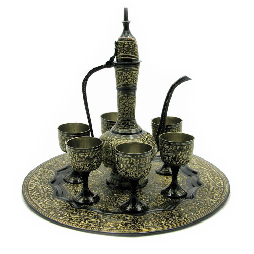 Service bronze black (tray, 6 glasses 80 ml., pitcher) (26 cm)