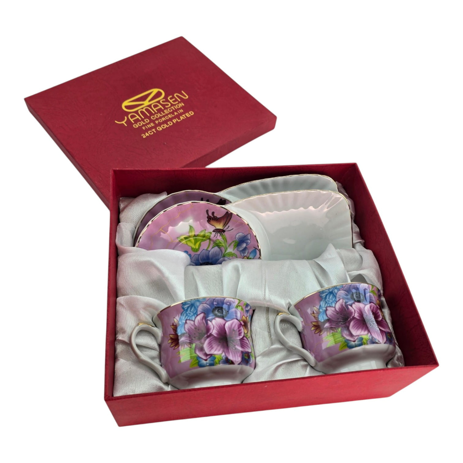 A gift set of two porcelain cups and saucers from Yamasen Gold Collection.