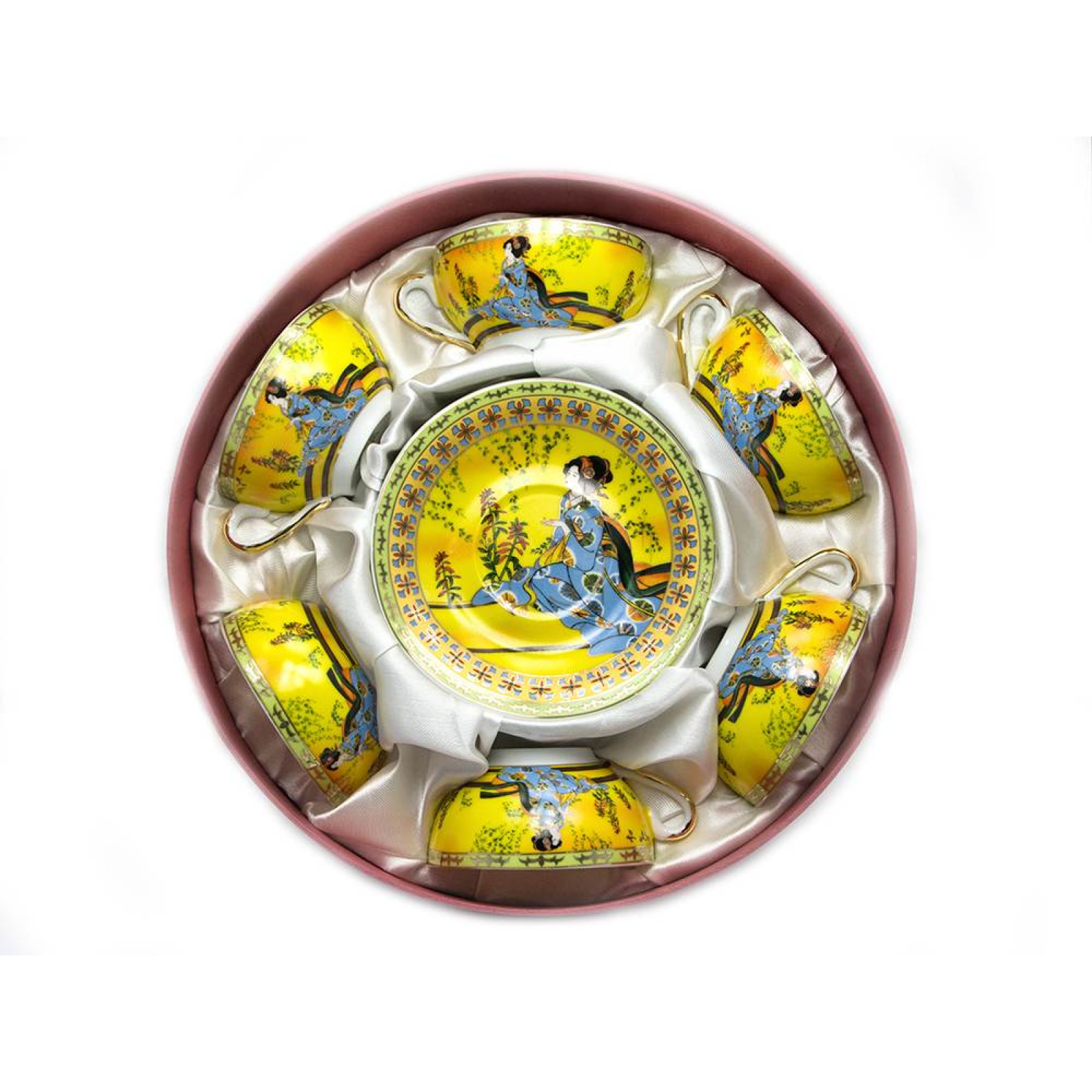 Tags: Round porcelain set (70ml.)(6CCS141-4) 6 cups + 6 saucers \"Yellow\"(h-4cm, d-7, 3cm, d saucers 11 cm), tea set, tableware, tea ceremony, gift