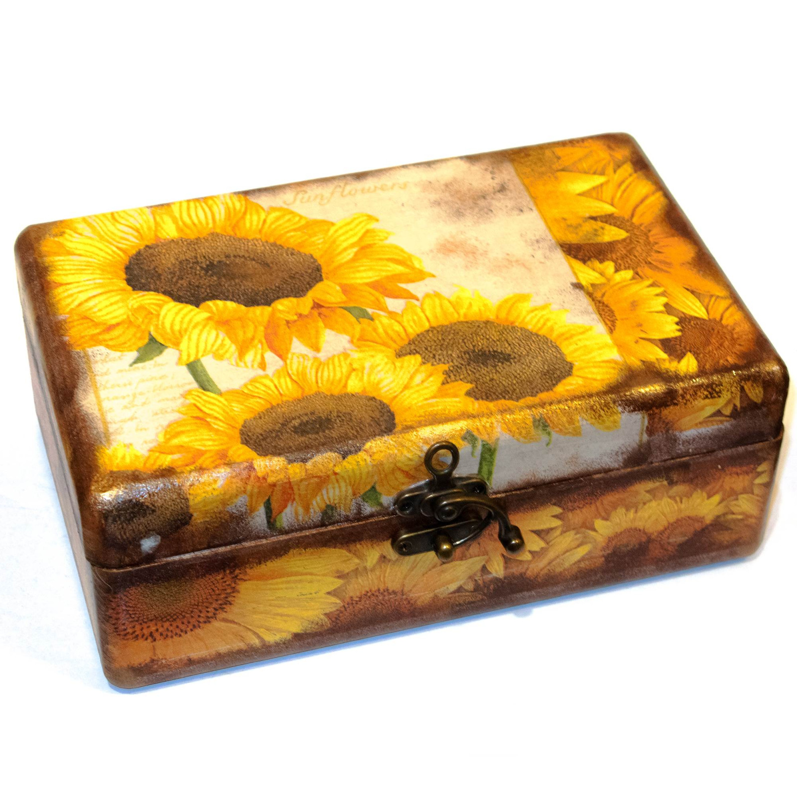Wooden box "Sunflowers", solid wood (20.5x12.5x8 cm)