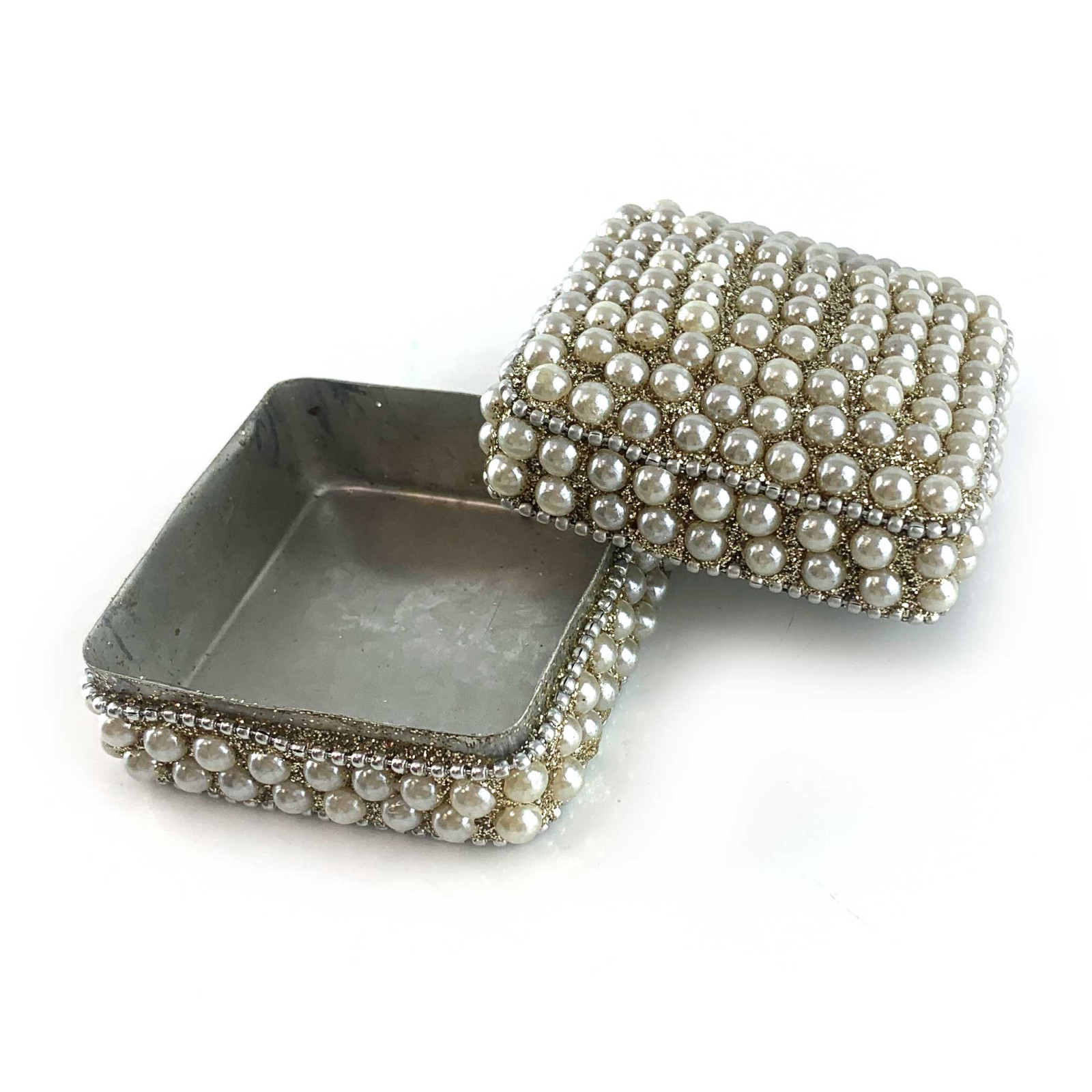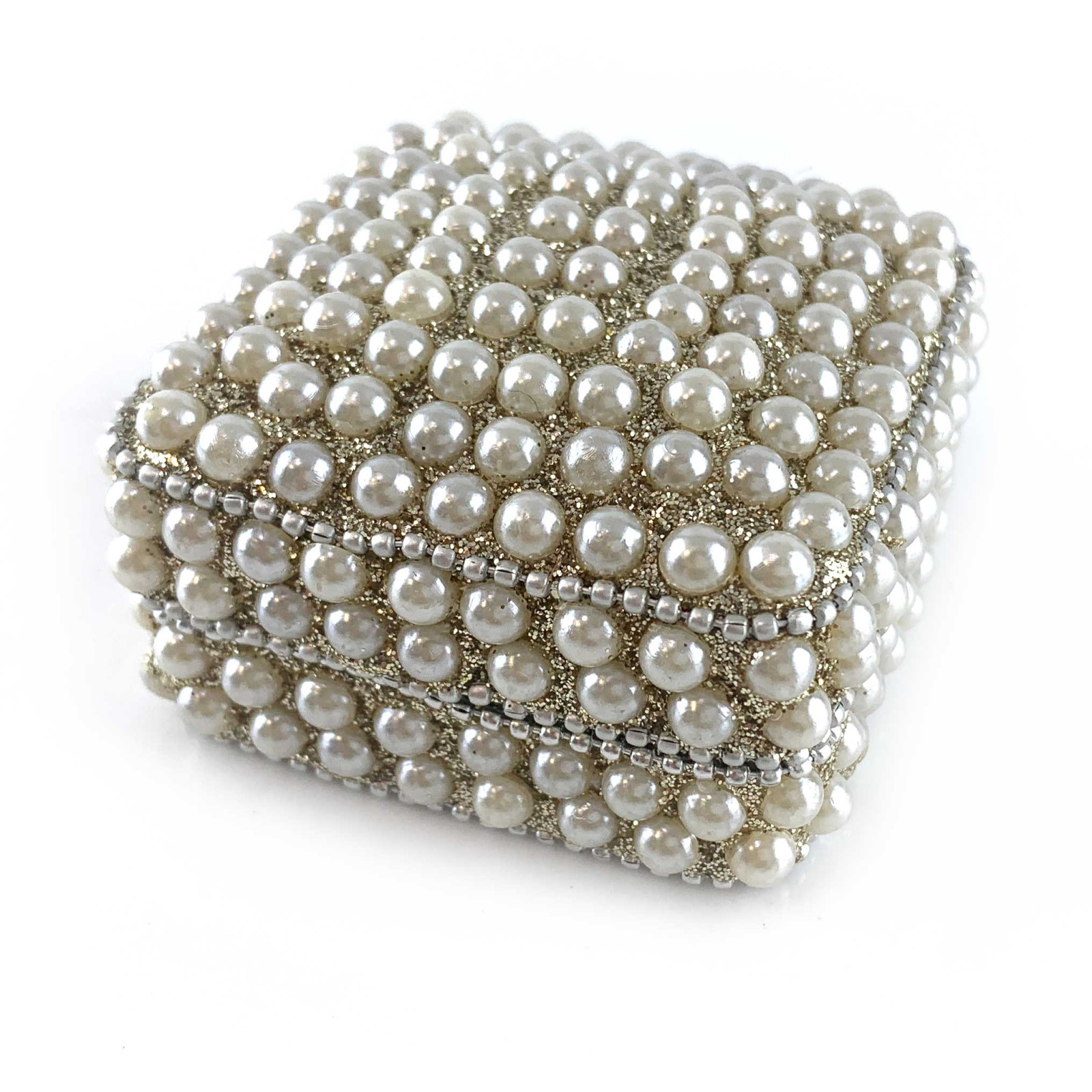 Description Square box with pearls (7x7x4 cm)
