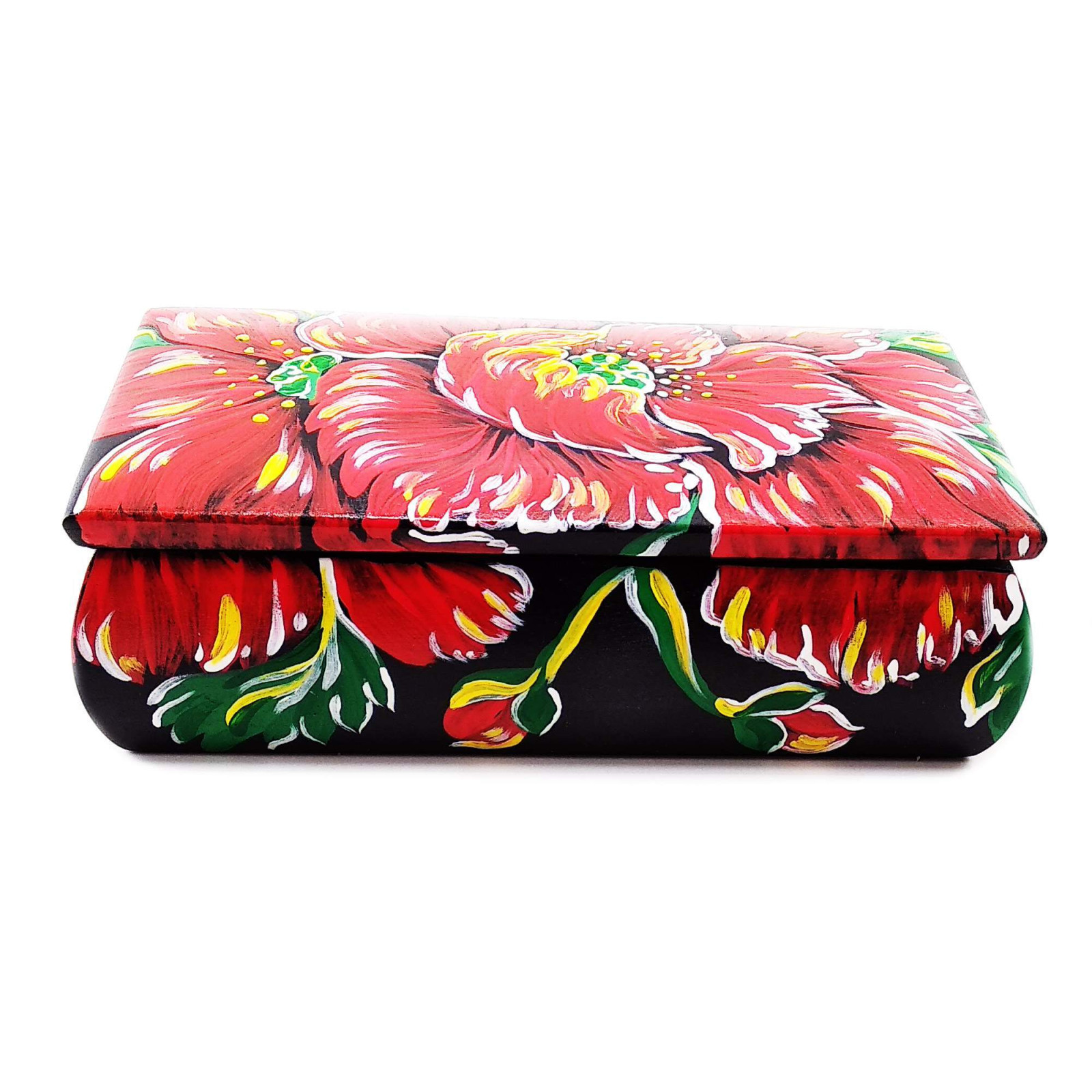 Box "Poppies" solid wood hand-painted(21x11x7 cm)