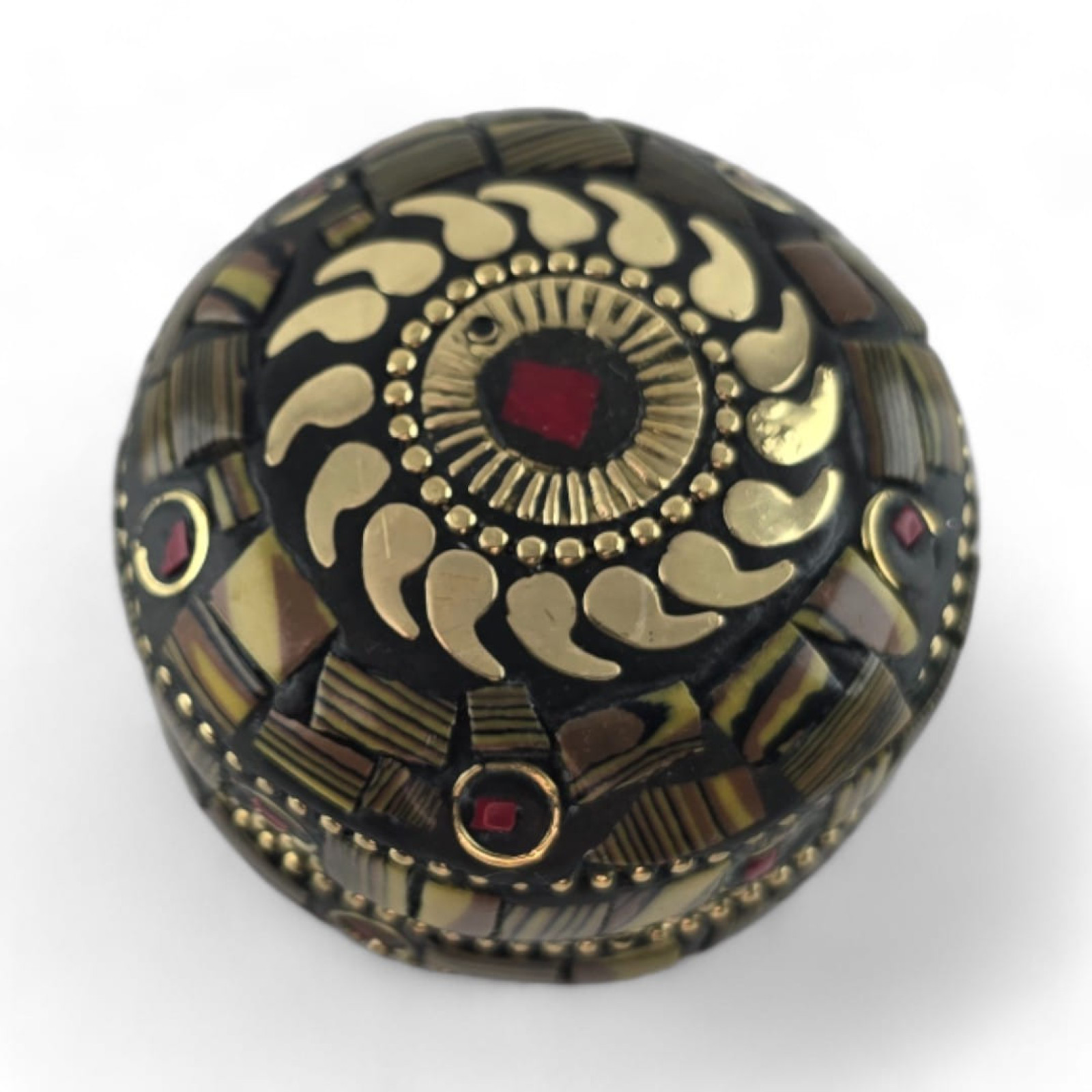 Metal box with corals is a small and elegant box, decorated with natural mother-of-pearl and corals.