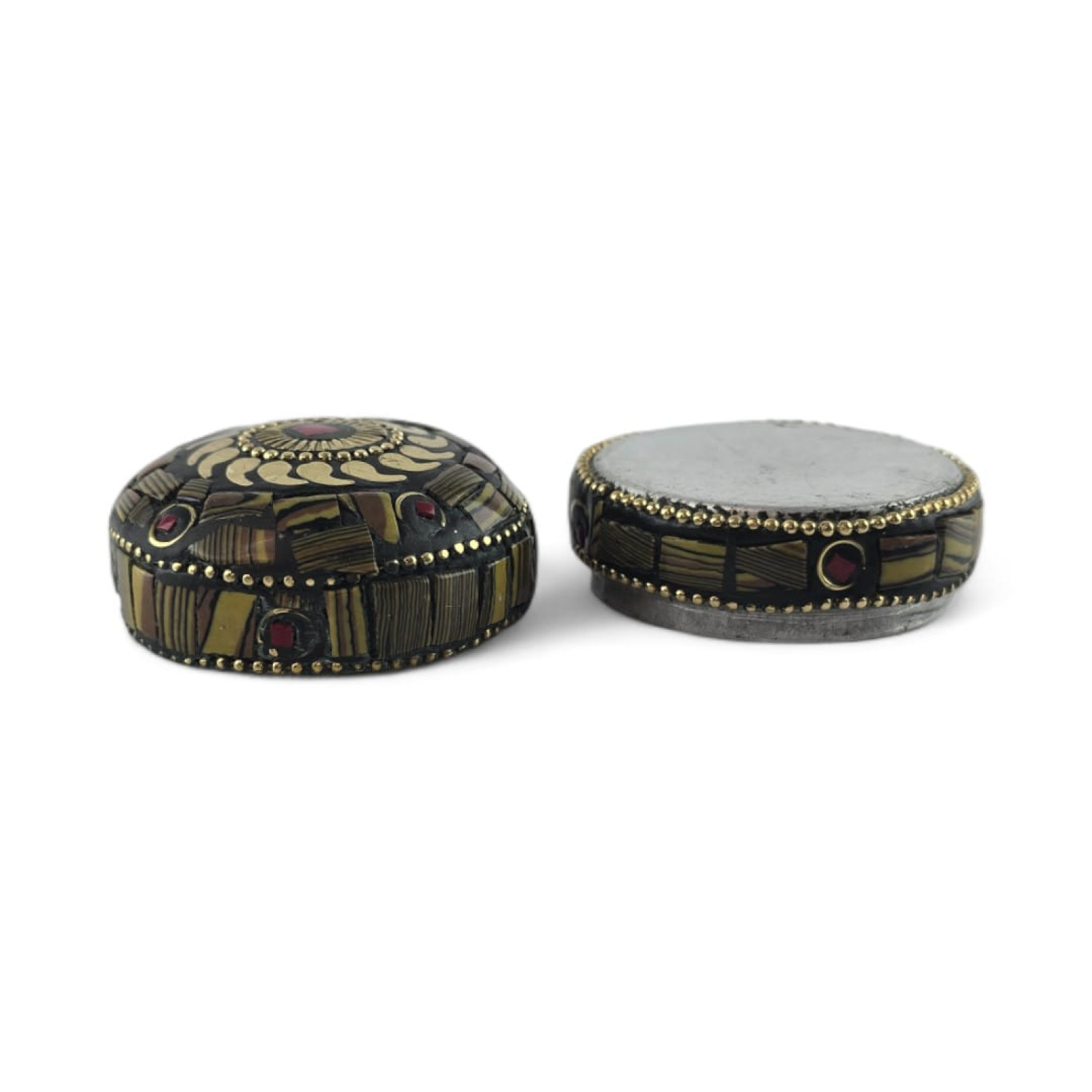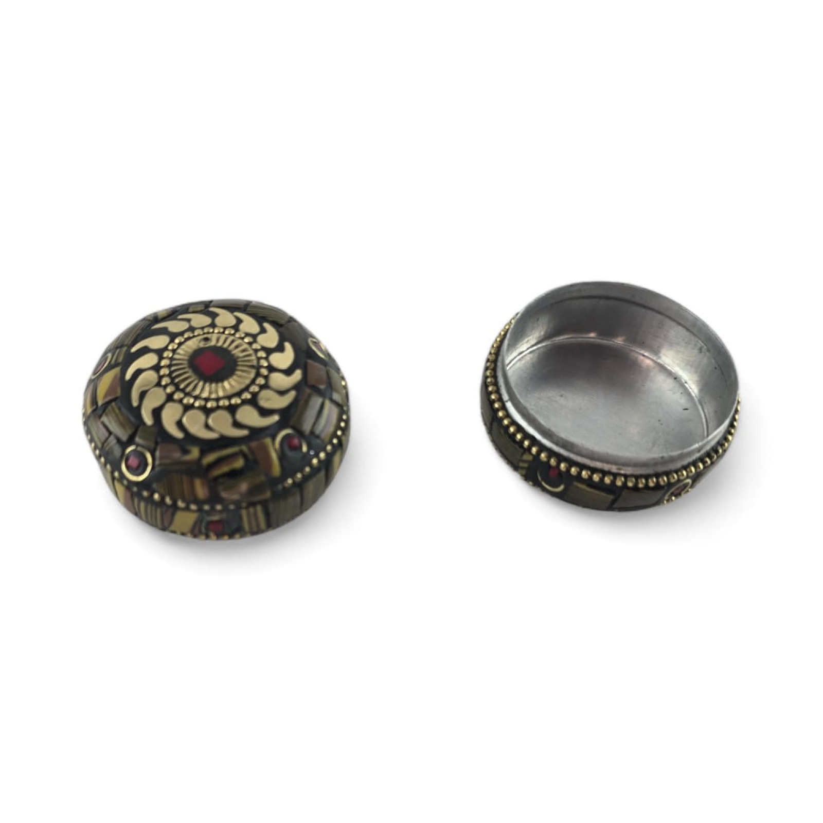 Metal box with corals (h-3.2; d-4.7 cm)