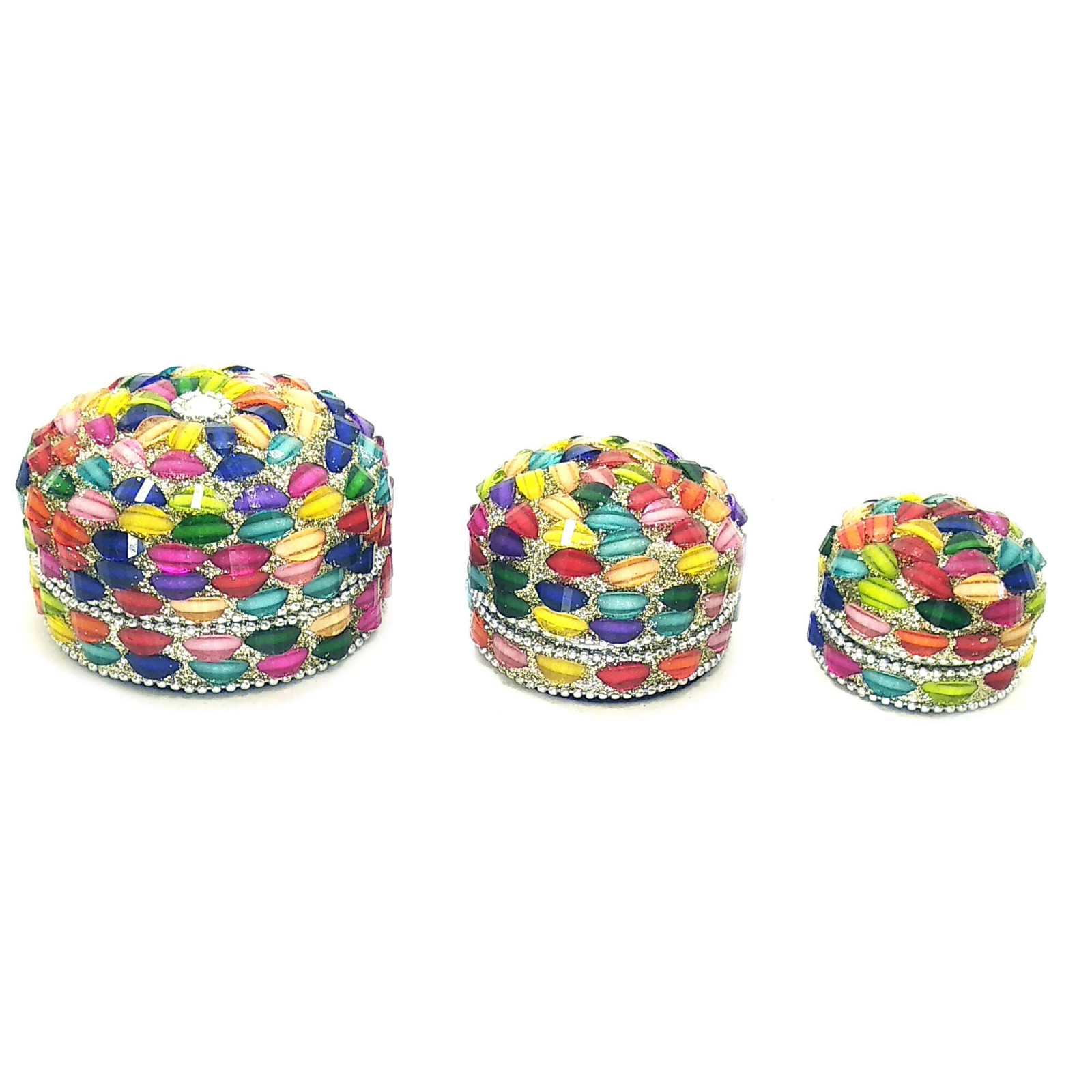 Metal boxes (for example, 3 pieces) with mosaic (7.5x7.5x4.5cm 6x6x3.5cm 5x5x3cm)