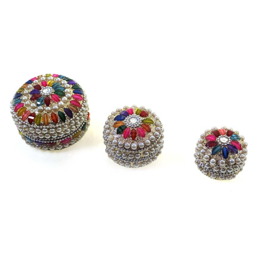 Metal boxes (for example, 3 pieces) with pearls (7.5x7.5x4cm 6x6x3cm 5x5x3.5cm) G