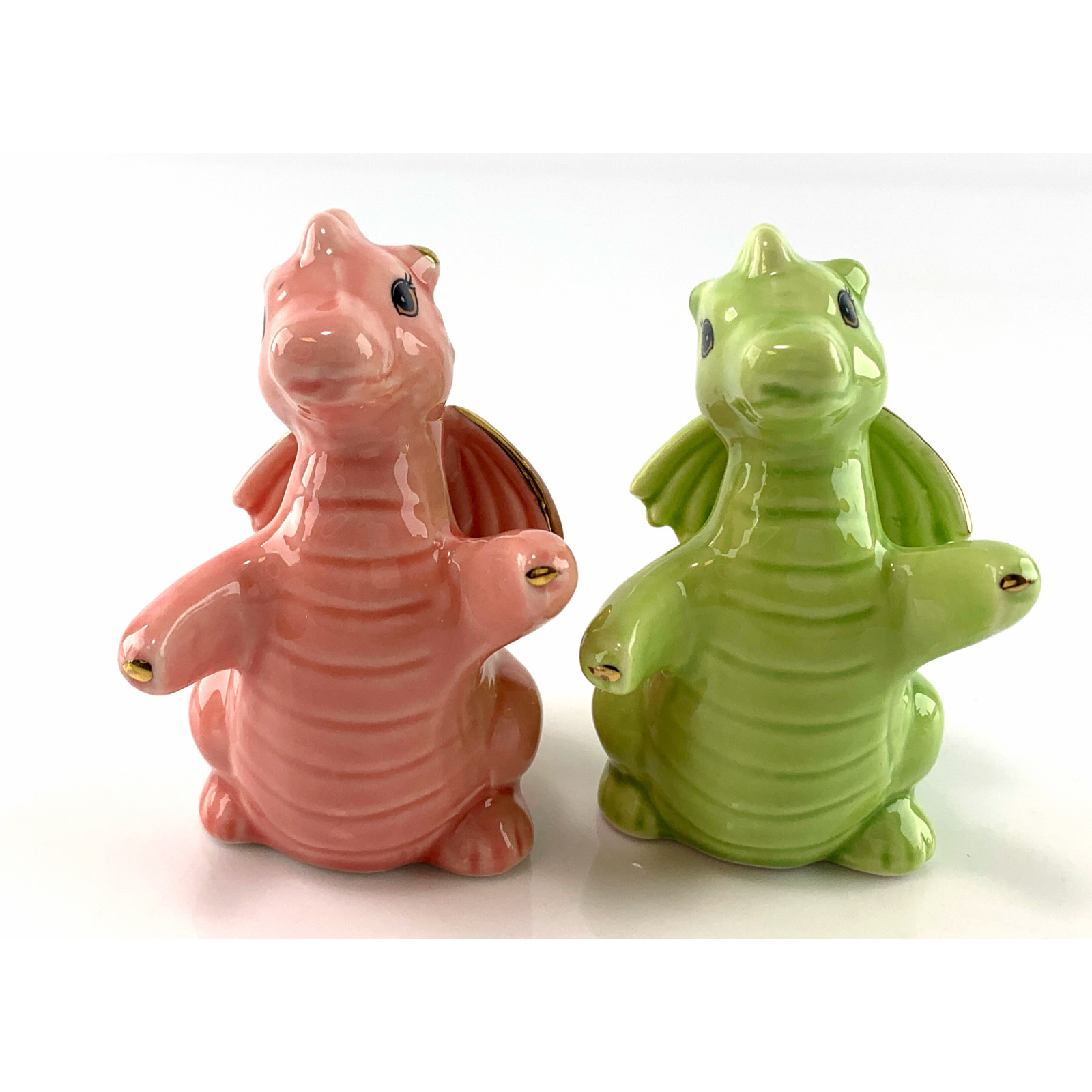 Width of one figurine: 50 mm - Thoughtful and embracing, the dragons in pink and green create visual balance and harmony.