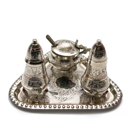 Salt shaker, pepper shaker, mustard pot bronze (eg 3 pcs) (17.5x12.5x9 cm).