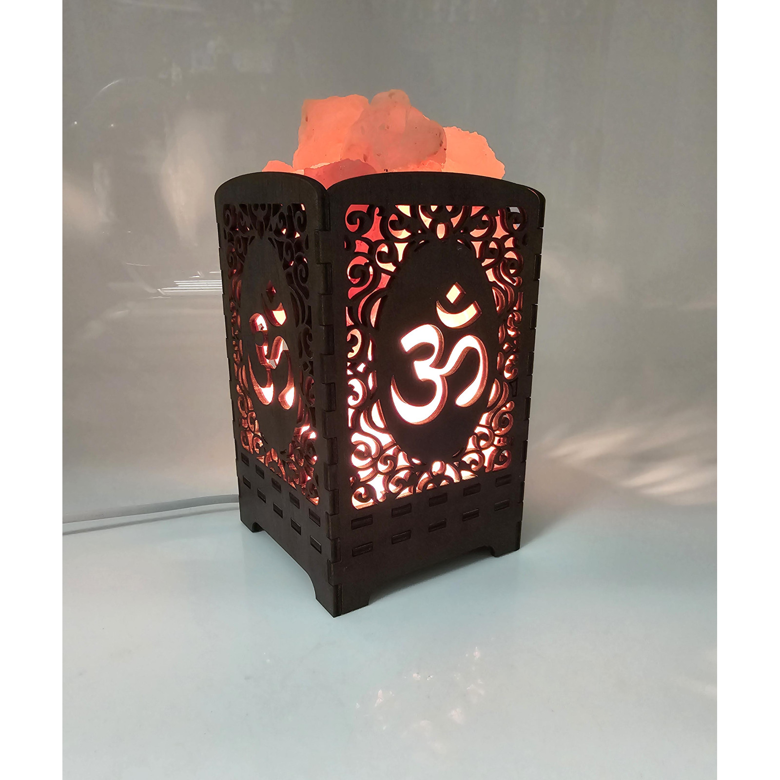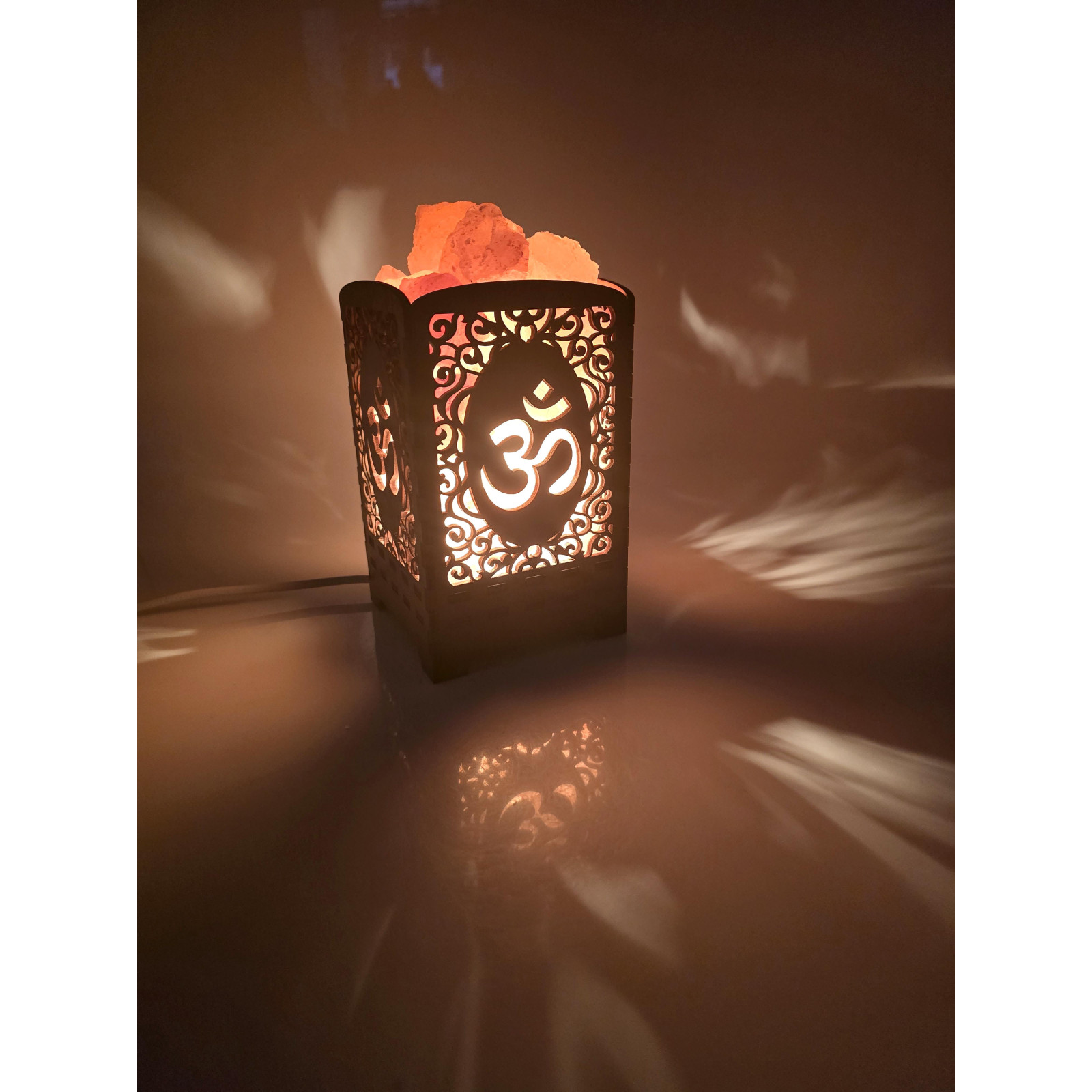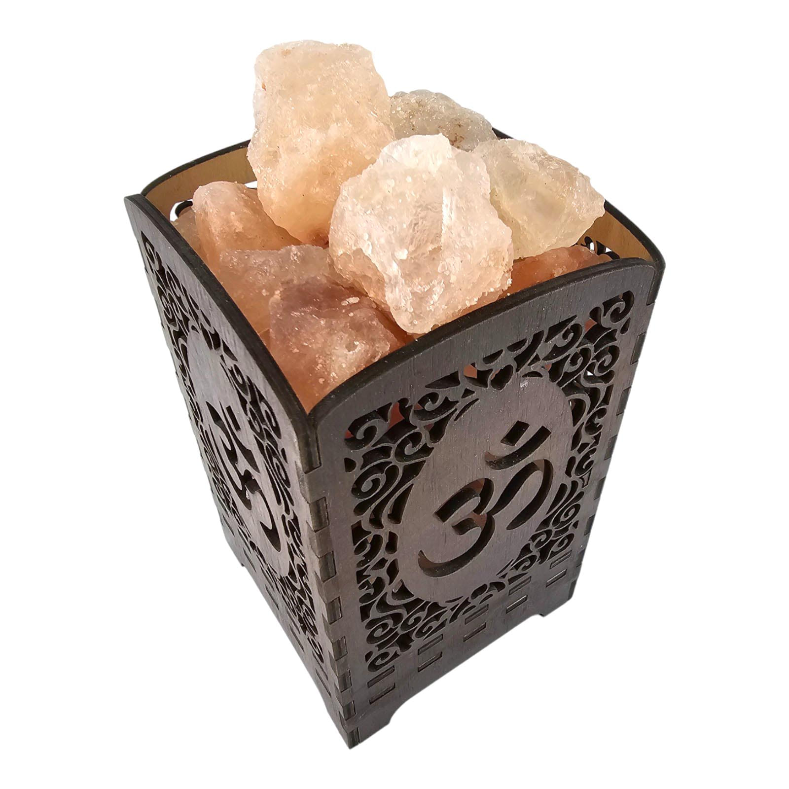 Description Himalayan Salt Lamp "Shining OM" (21x10.8x10.8 cm)