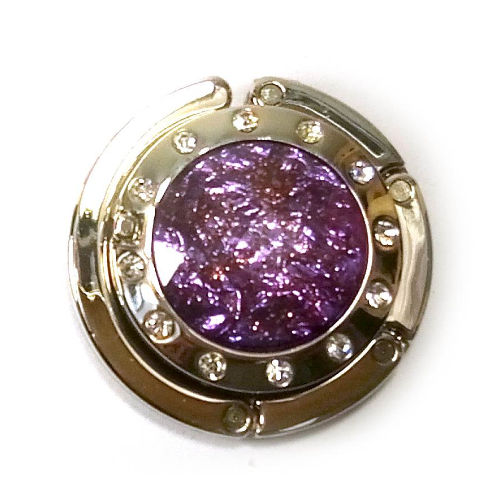 Bag holder for women's handbag "Crystal purple" with mirror (d-4.5 cm)