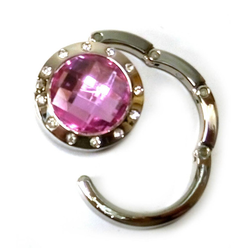 Bag holder for women's handbag "Crystal light purple" with mirror (d-4.5 cm)