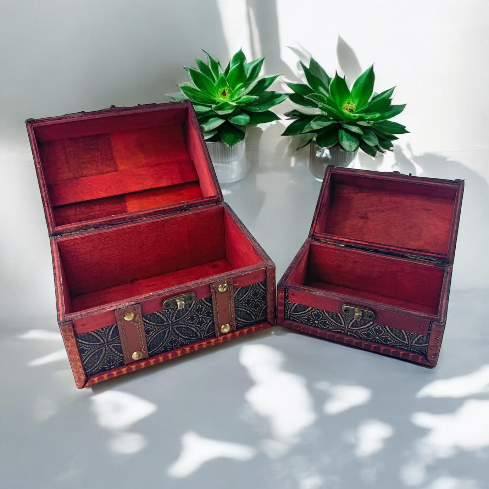 These chests are made of wood with exquisite decor, giving the products a special elegance. They are equipped with reliable clasps, so their contents will always be safe. Convenient dimensions allow you to use them both for home storage and as decorative elements. Retro design and carved inserts add special charm to the chests.