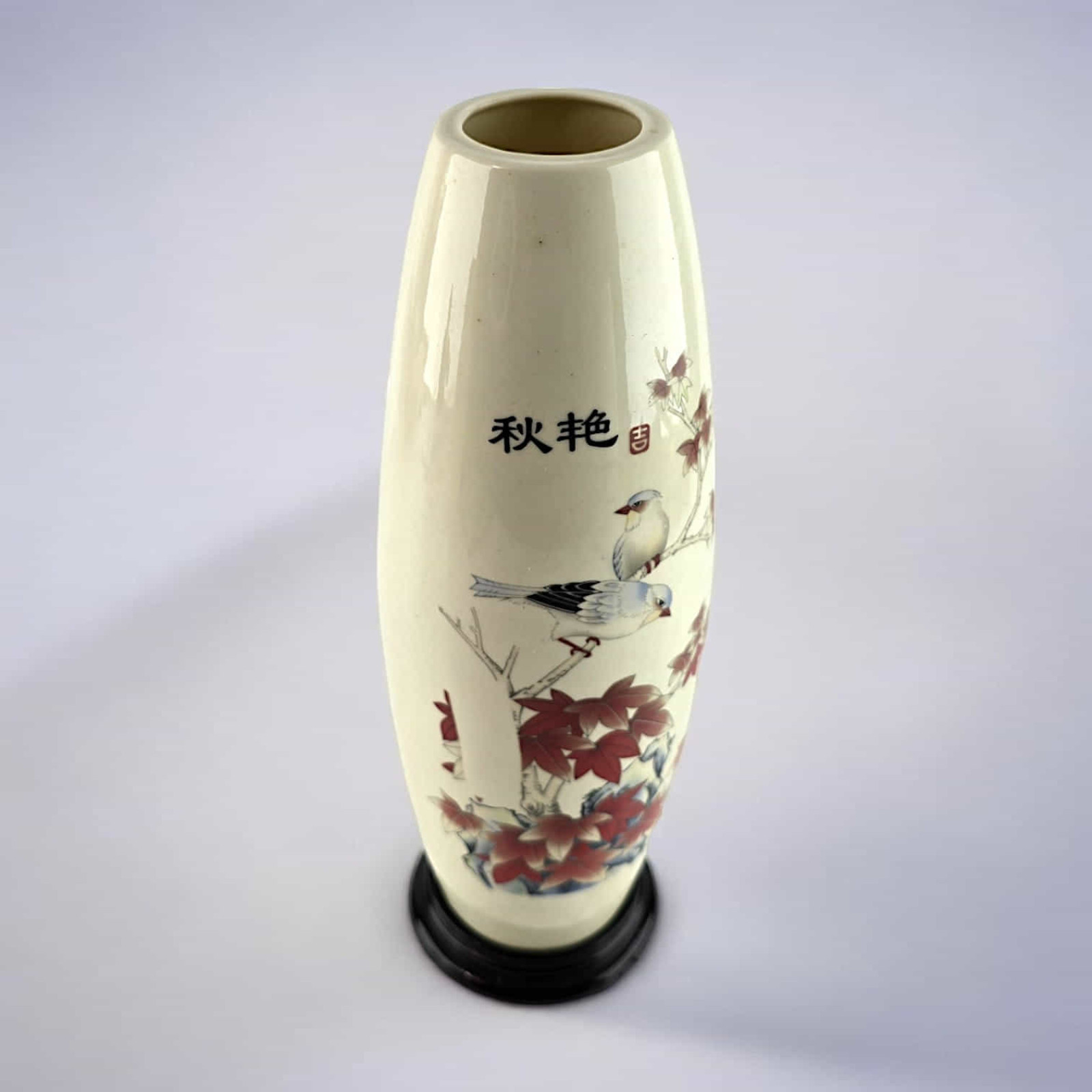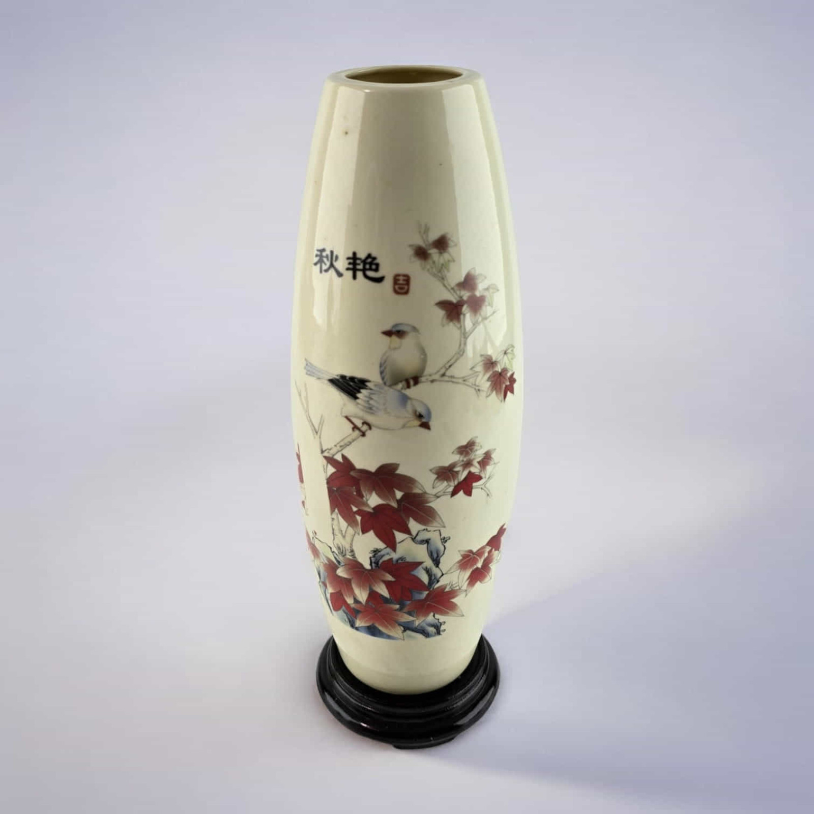 Description Vase "Birds on a branch" porcelain on a stand (26x9x9) DISCOUNT: