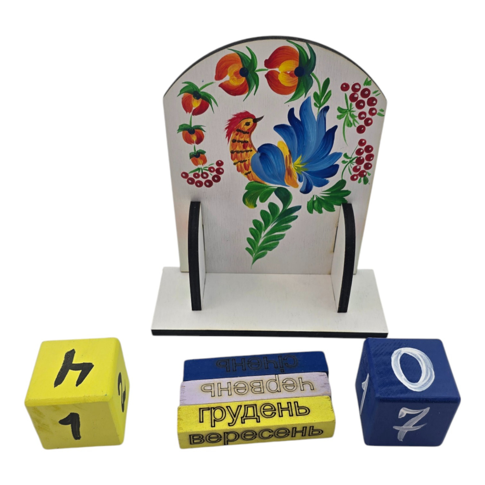 Perpetual calendar in the Ukrainian style with images of the bird of Independence - this is a desktop one
