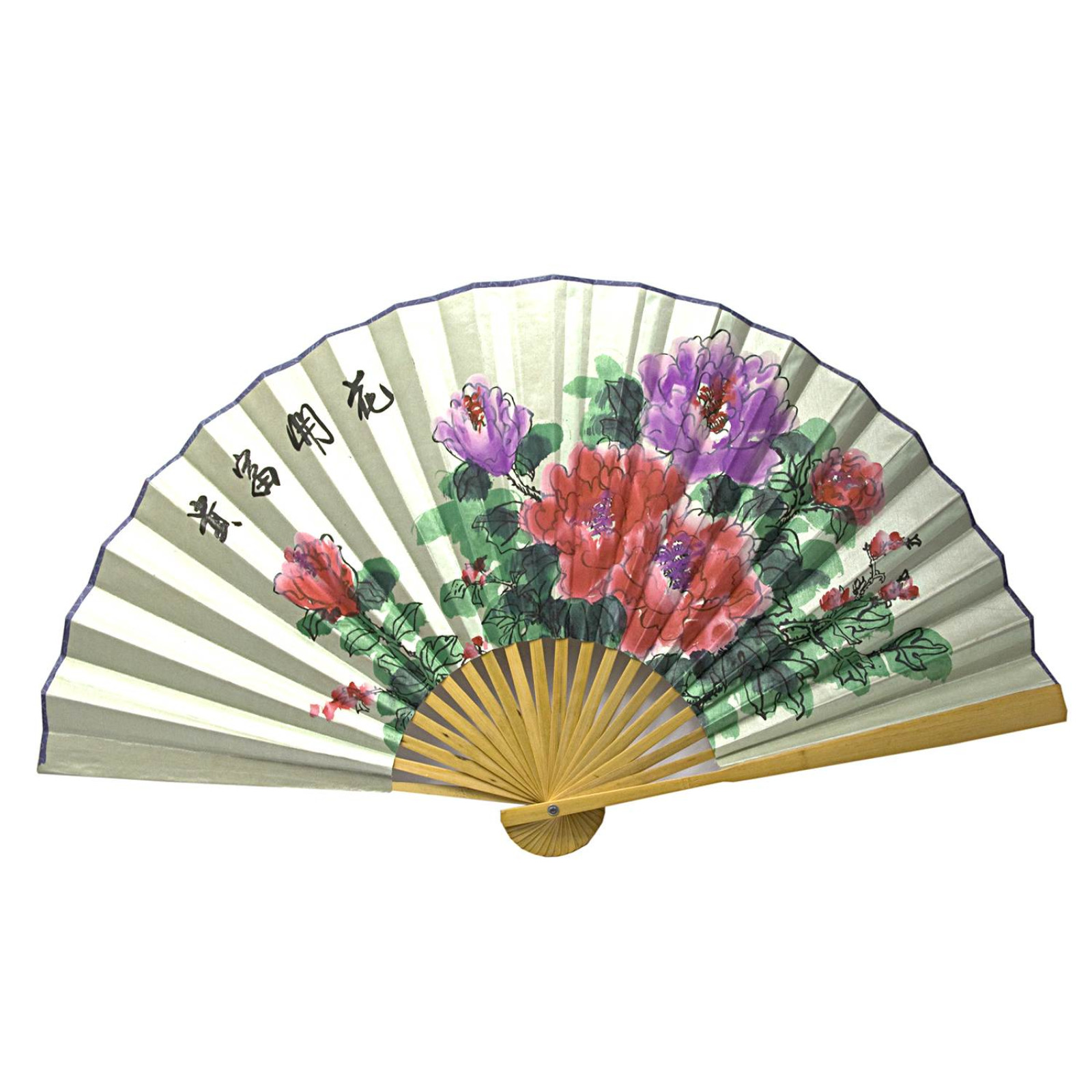 Bamboo fan with silk "Flowers on a white background" (50 cm spread 85x50 cm)