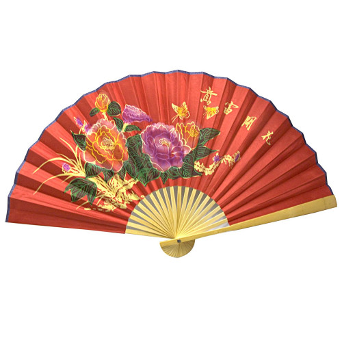 Bamboo fan with silk "Peonies on a red background" (50 cm in a spread of 85x50 cm)