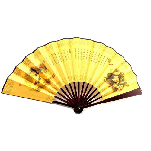 Bamboo fan with silk "Lotus and birds" in a box (33 cm)E
